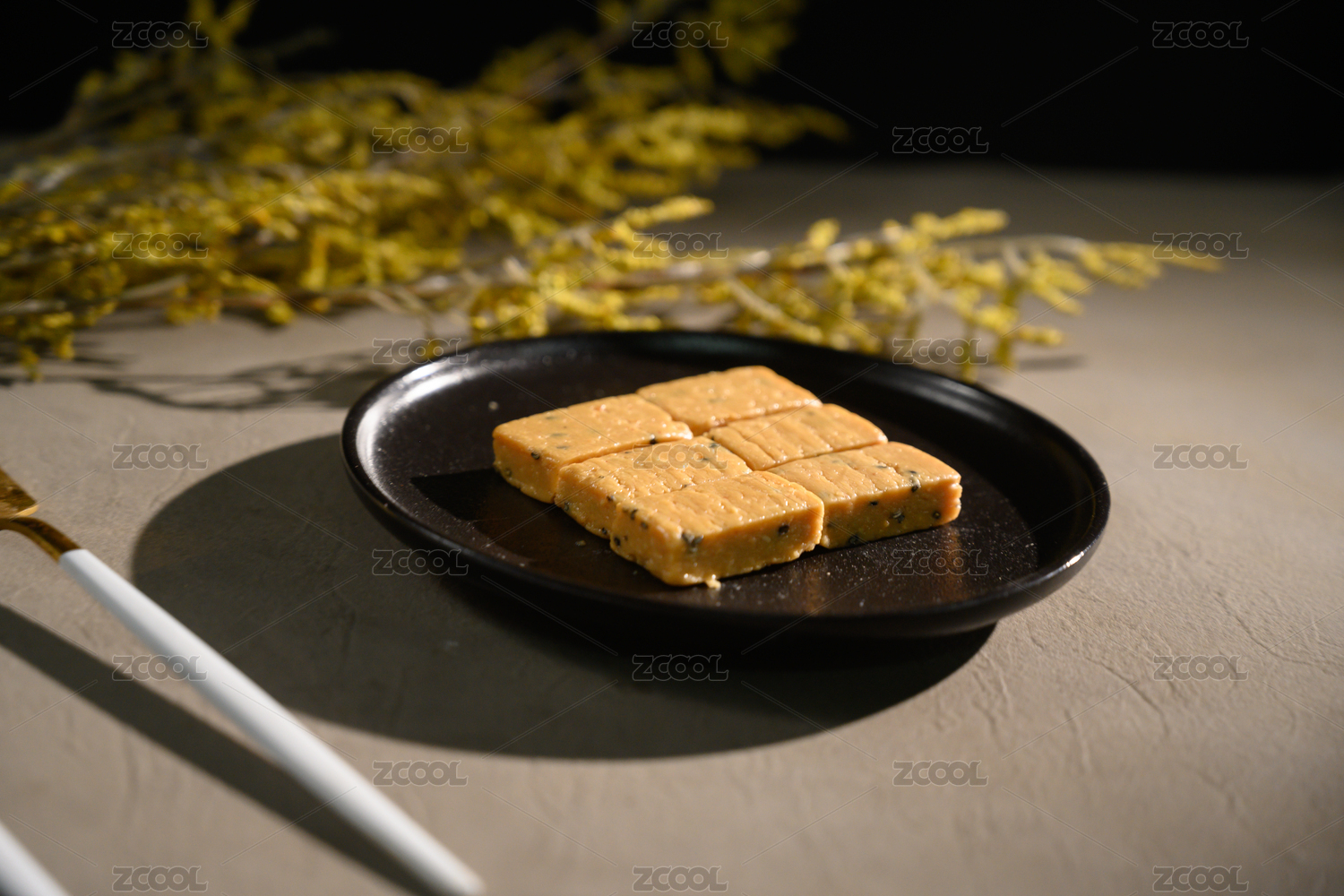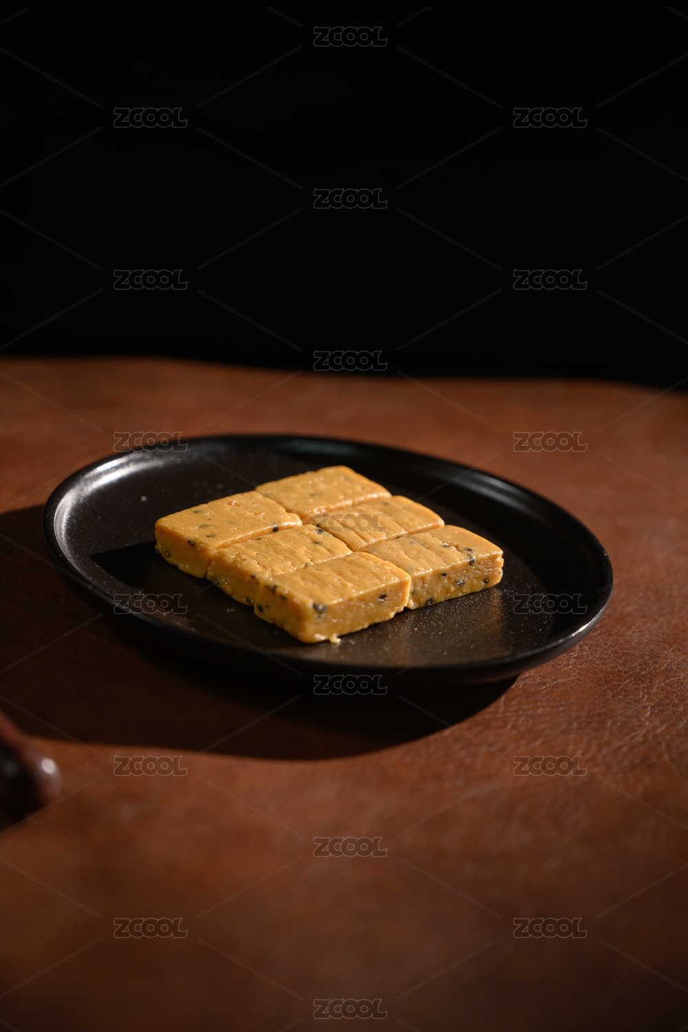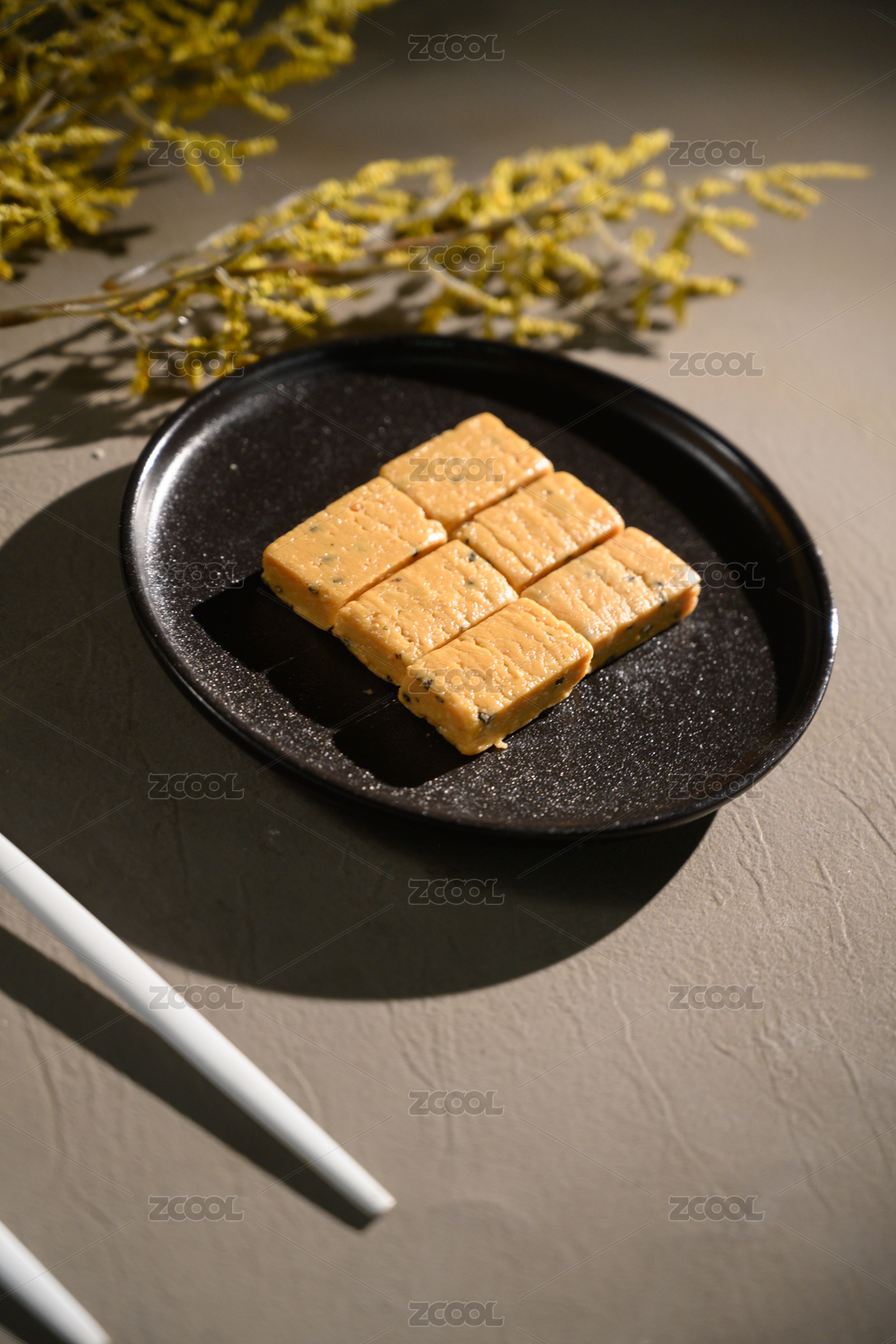 桌面上的盘子里的美味可口的夹心山楂奶糕