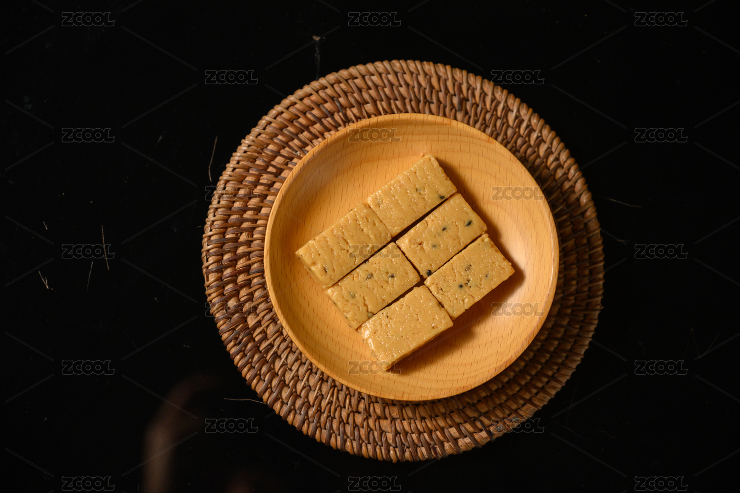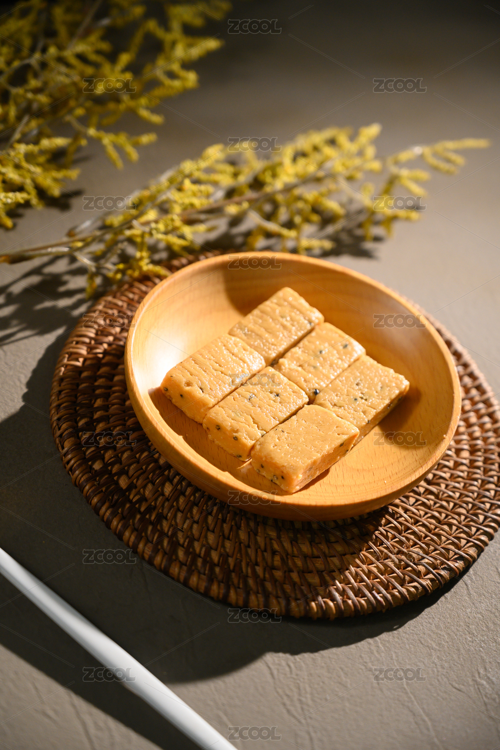 桌面上的盘子里的美味可口的夹心山楂奶糕