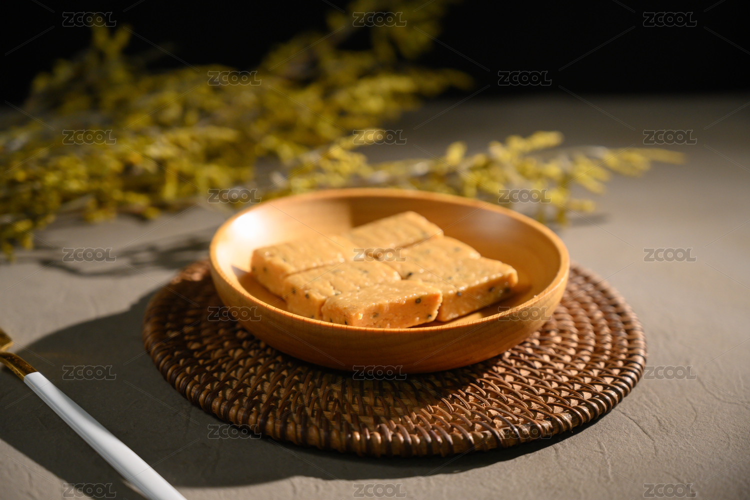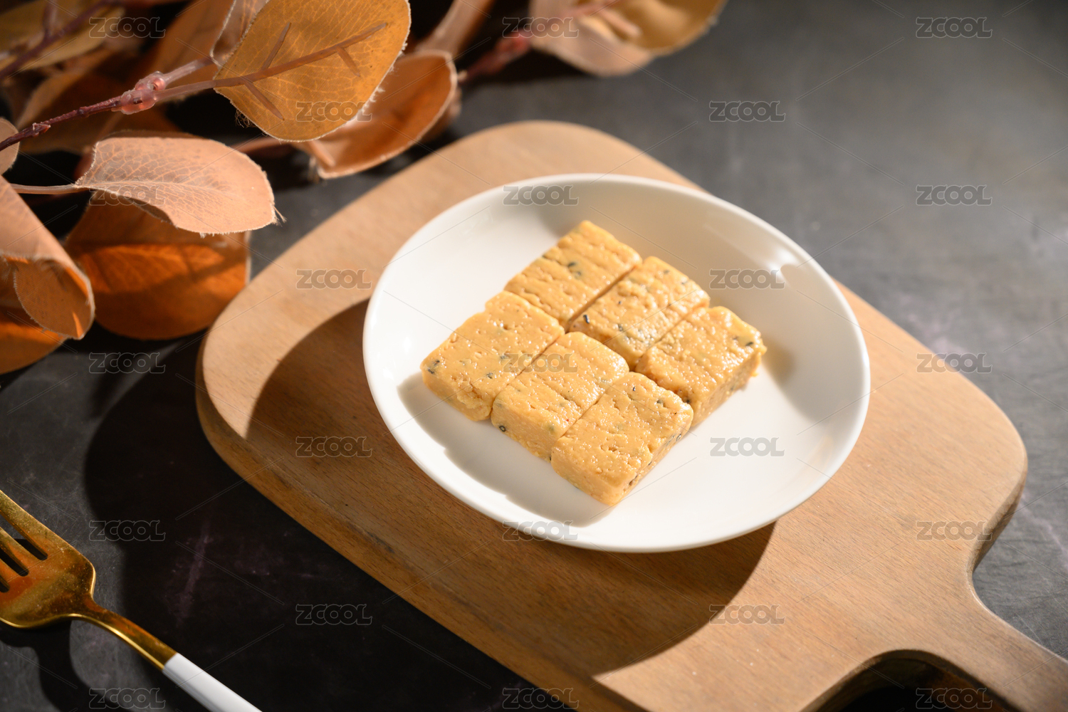 桌面上的盘子里的美味可口的夹心山楂奶糕
