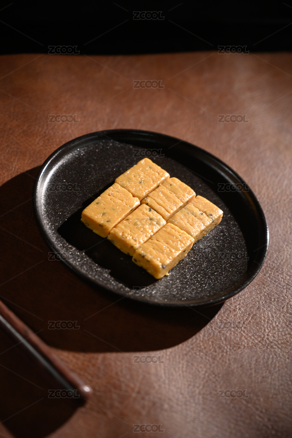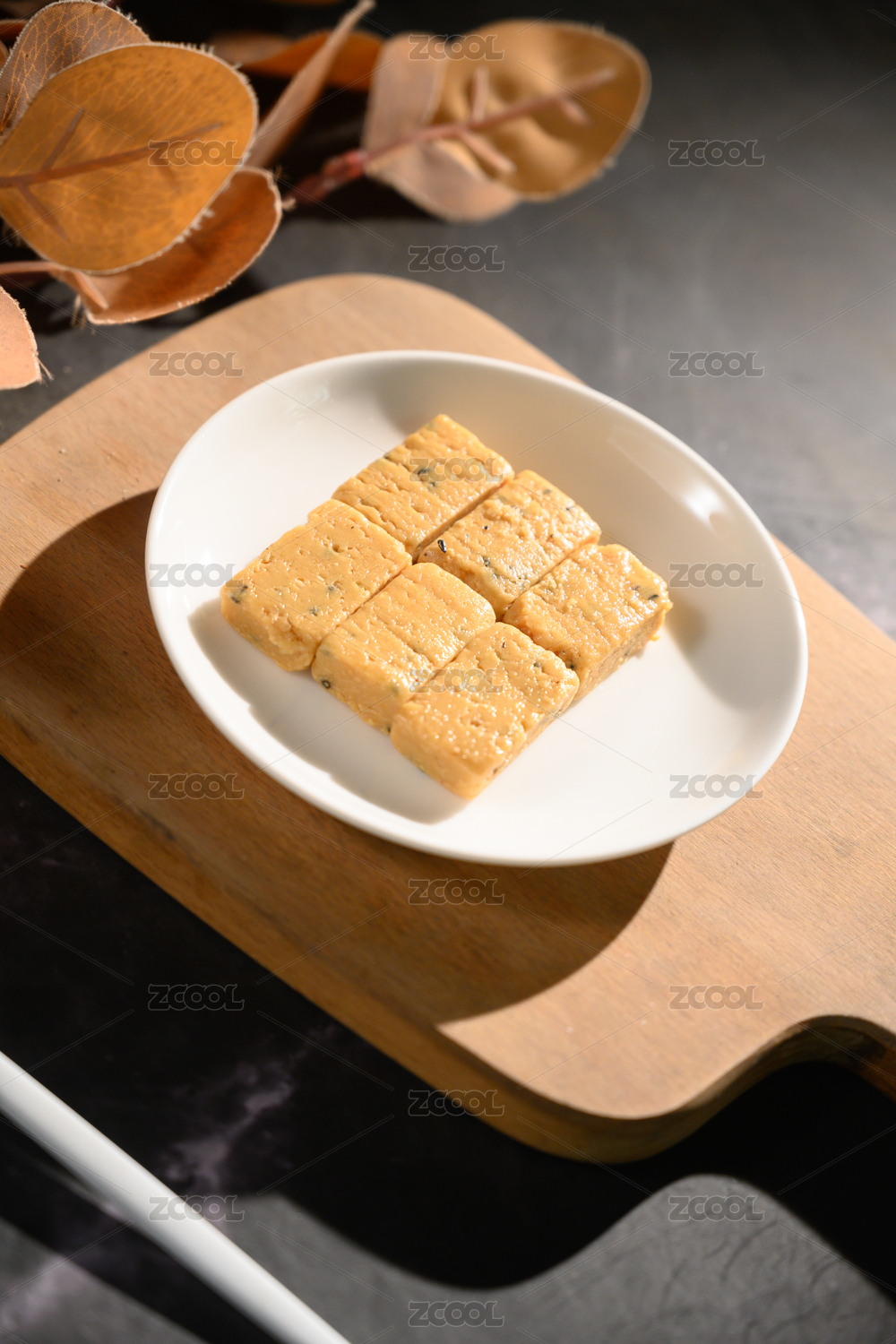 桌面上的盘子里的美味可口的夹心山楂奶糕