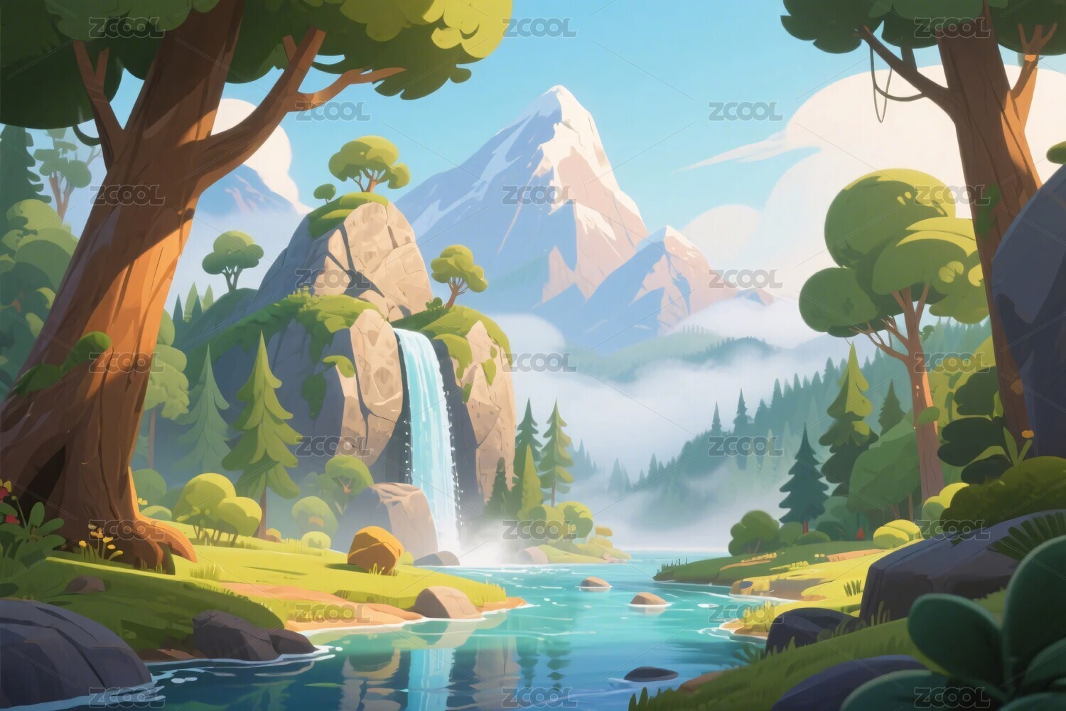 卡通山水风景