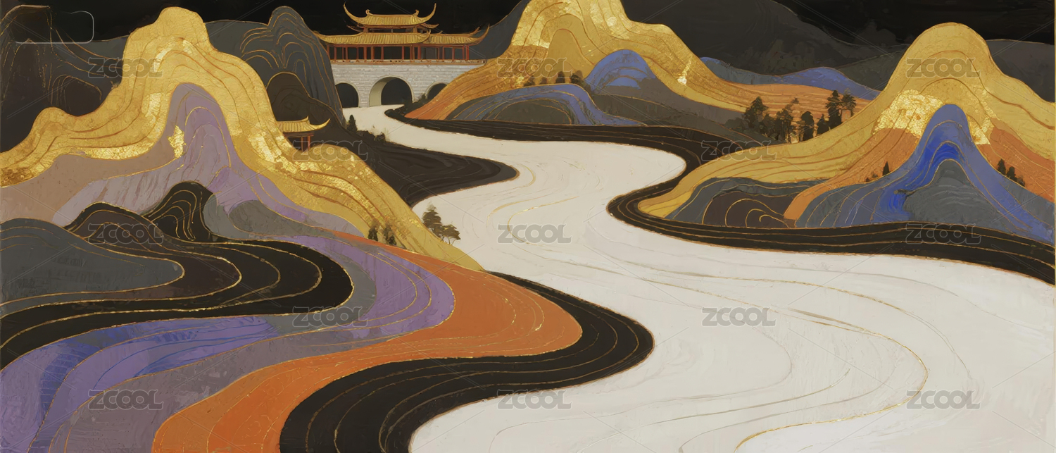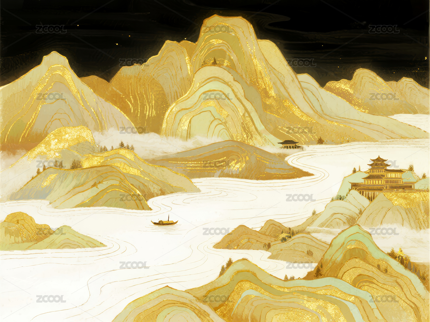 风景, 自然,金色, 艺术, 抽象, 色彩, 梦幻, 山峦, 河流, 岩石