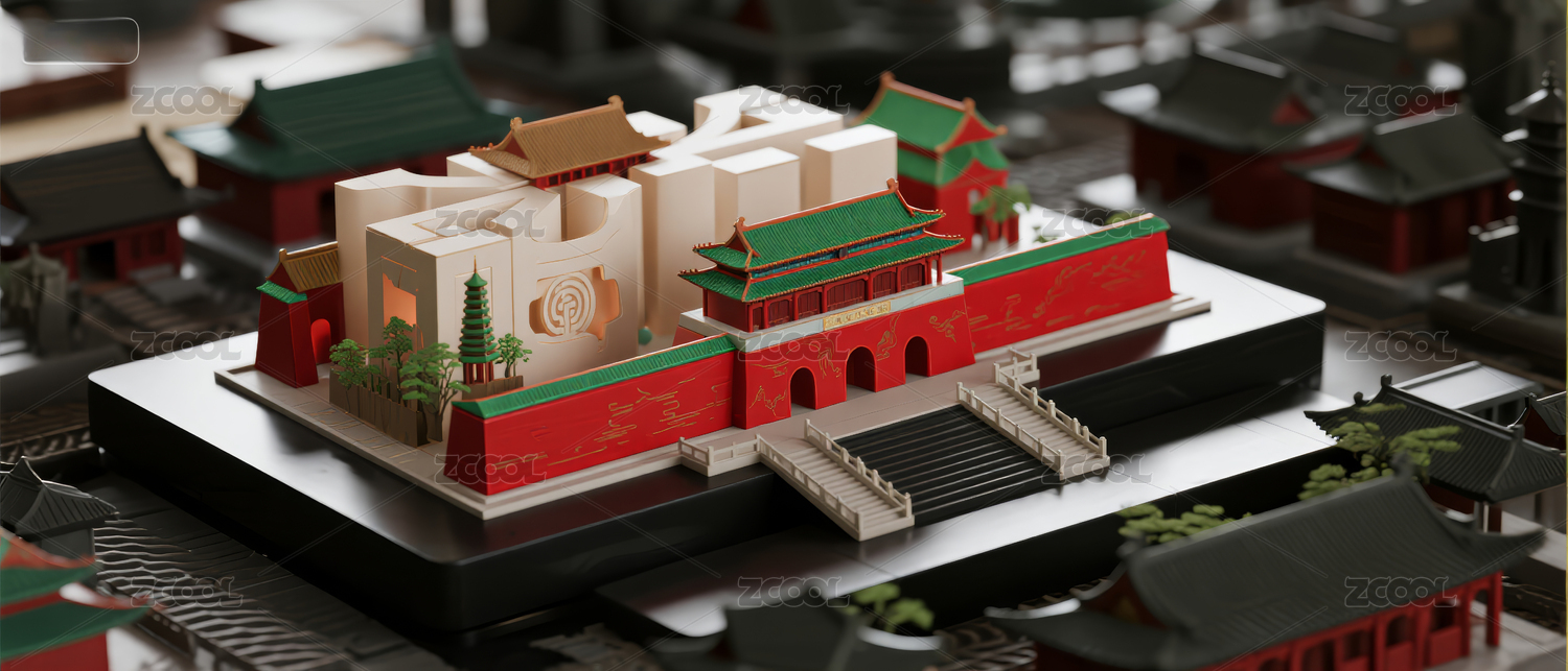 3D国风建筑微缩场景中秋月亮月饼摩天大厦