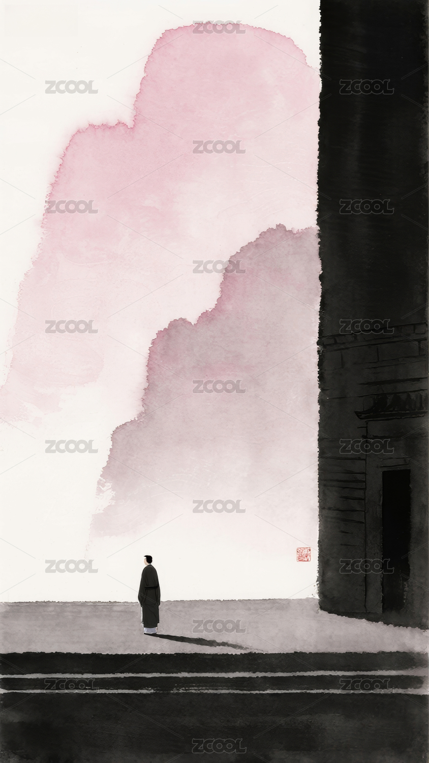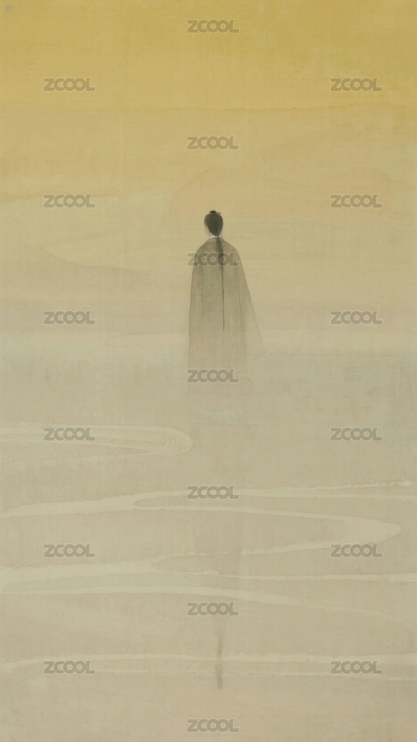 水墨山水行者