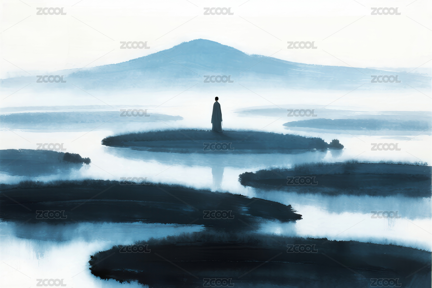 自然, 风景, 宁静, 静谧, 幽静, 人物, 朦胧, 湖水, 倒影, 水面