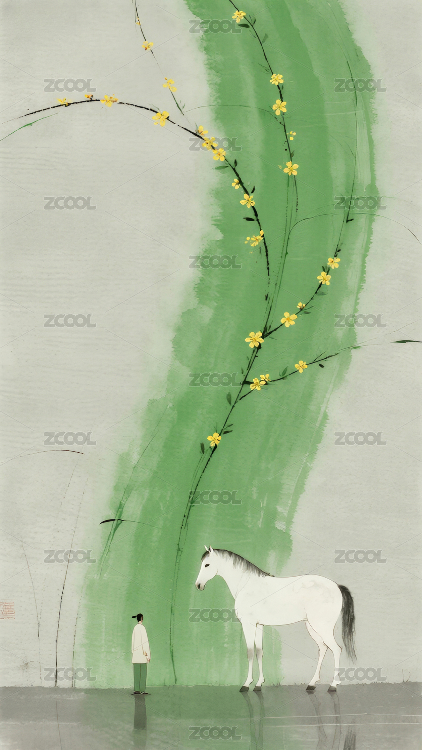 水墨画中马与树影