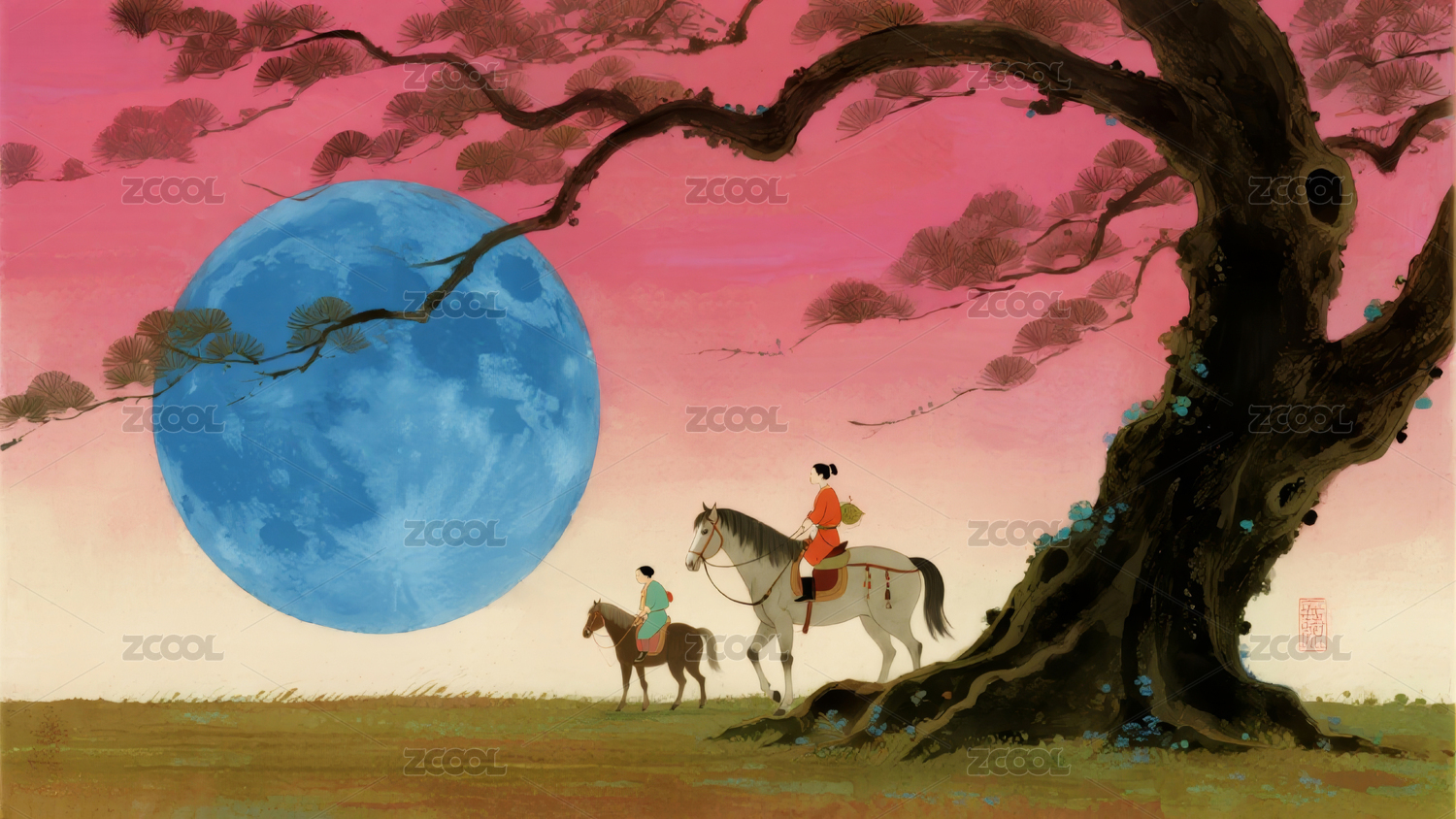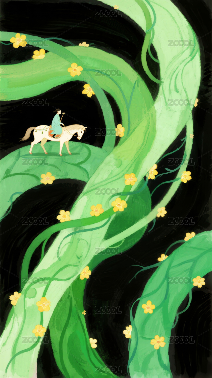 树枝, 自然, 艺术, 宁静, 美丽, 意境, 人物, 梦幻, 插画, 骑马