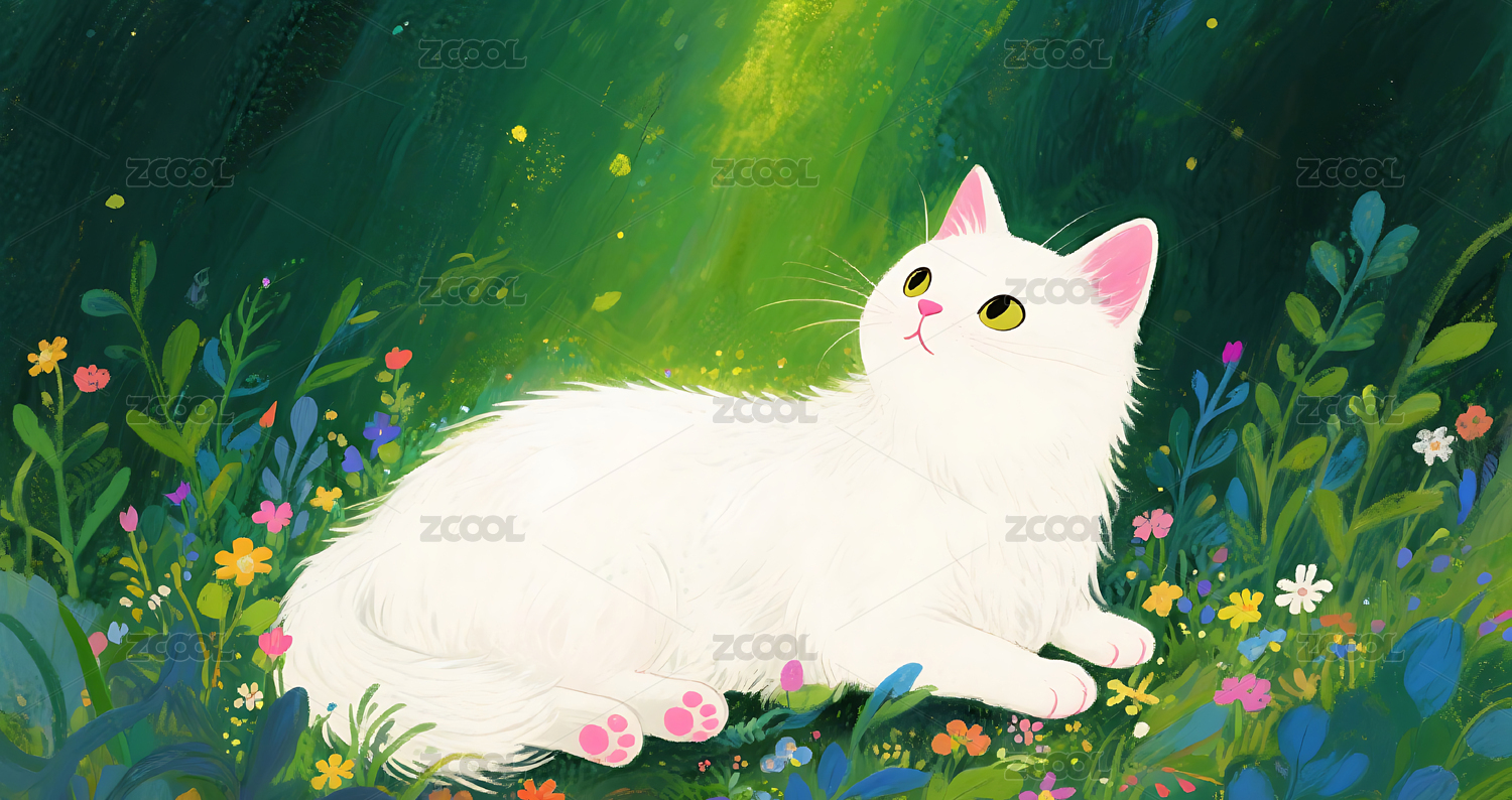 草丛里的白猫插画