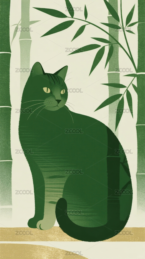 绿色, 竹子, 背景, 自然, 艺术, 插画, 动物, 生态, 和谐, 设计