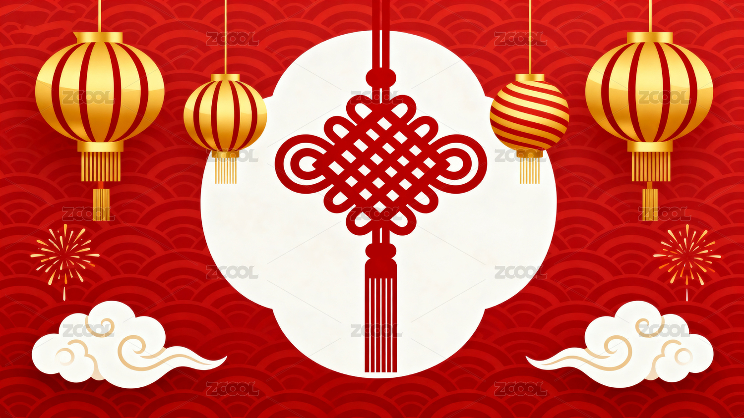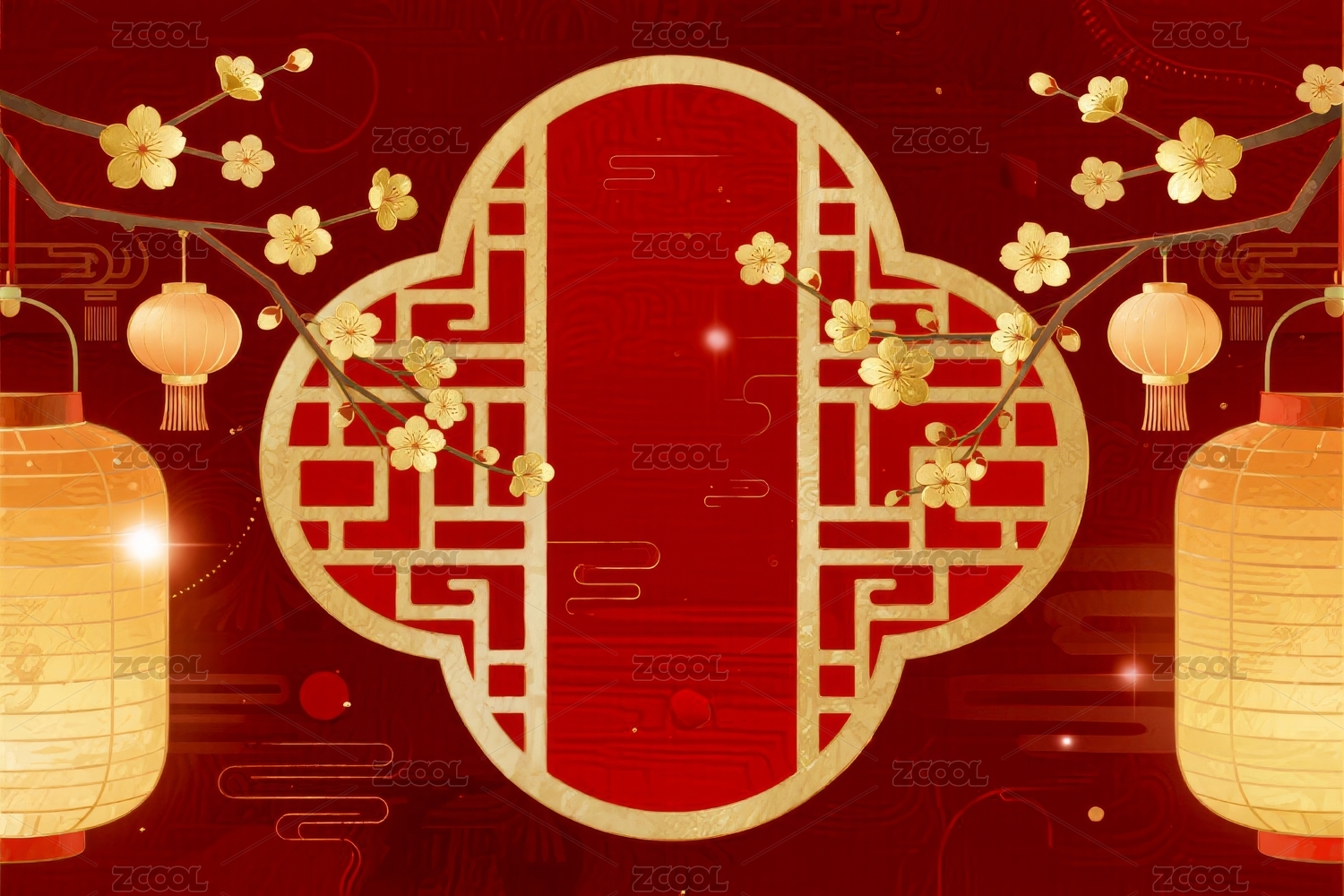红色背景下的灯笼与结饰图案