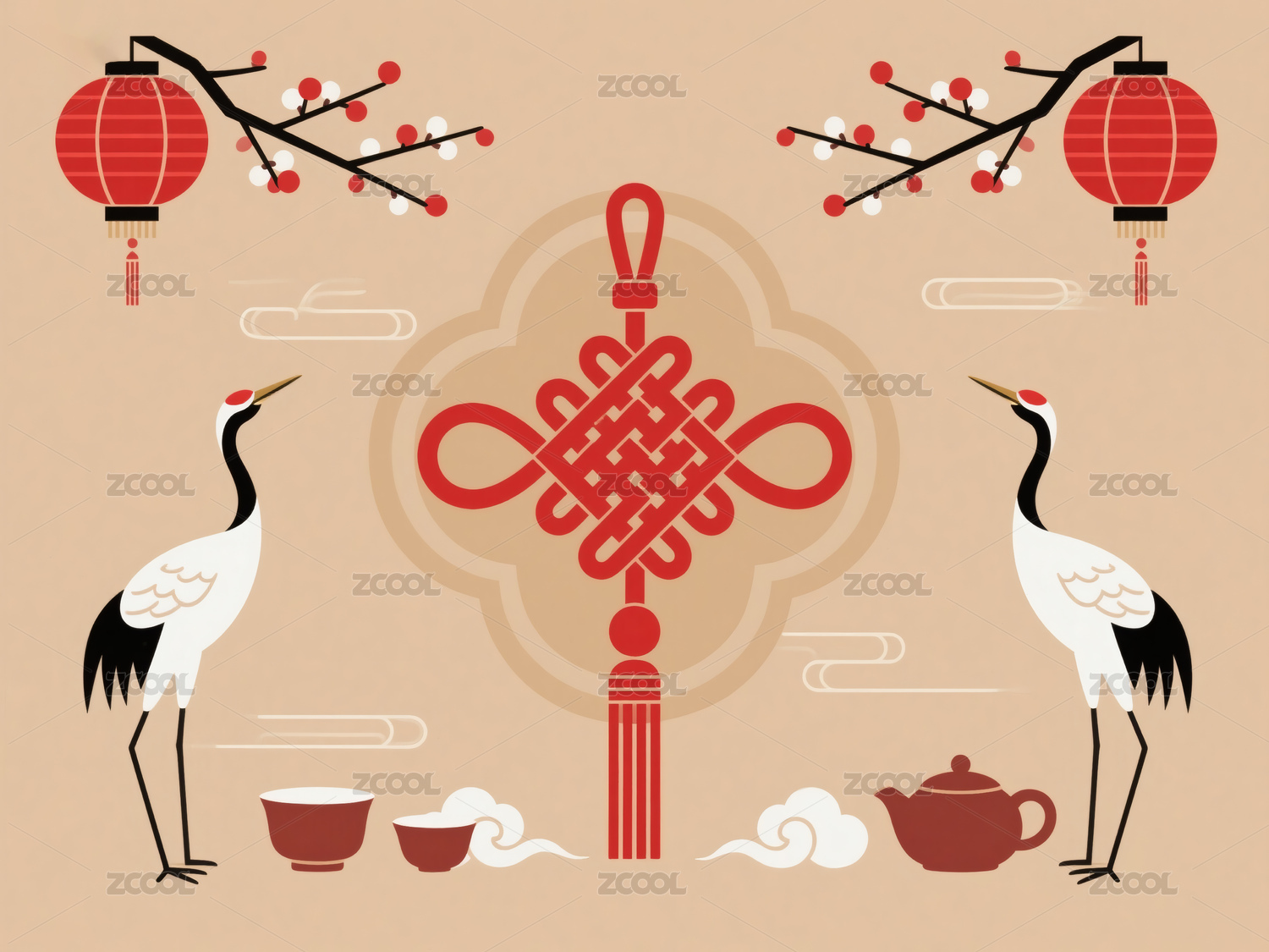 仙鹤与中国结