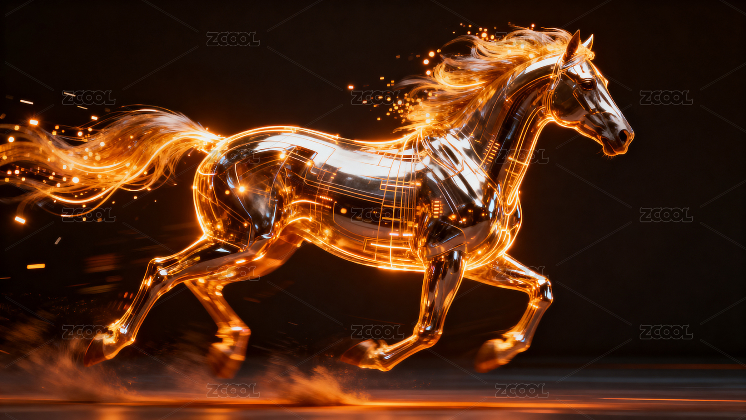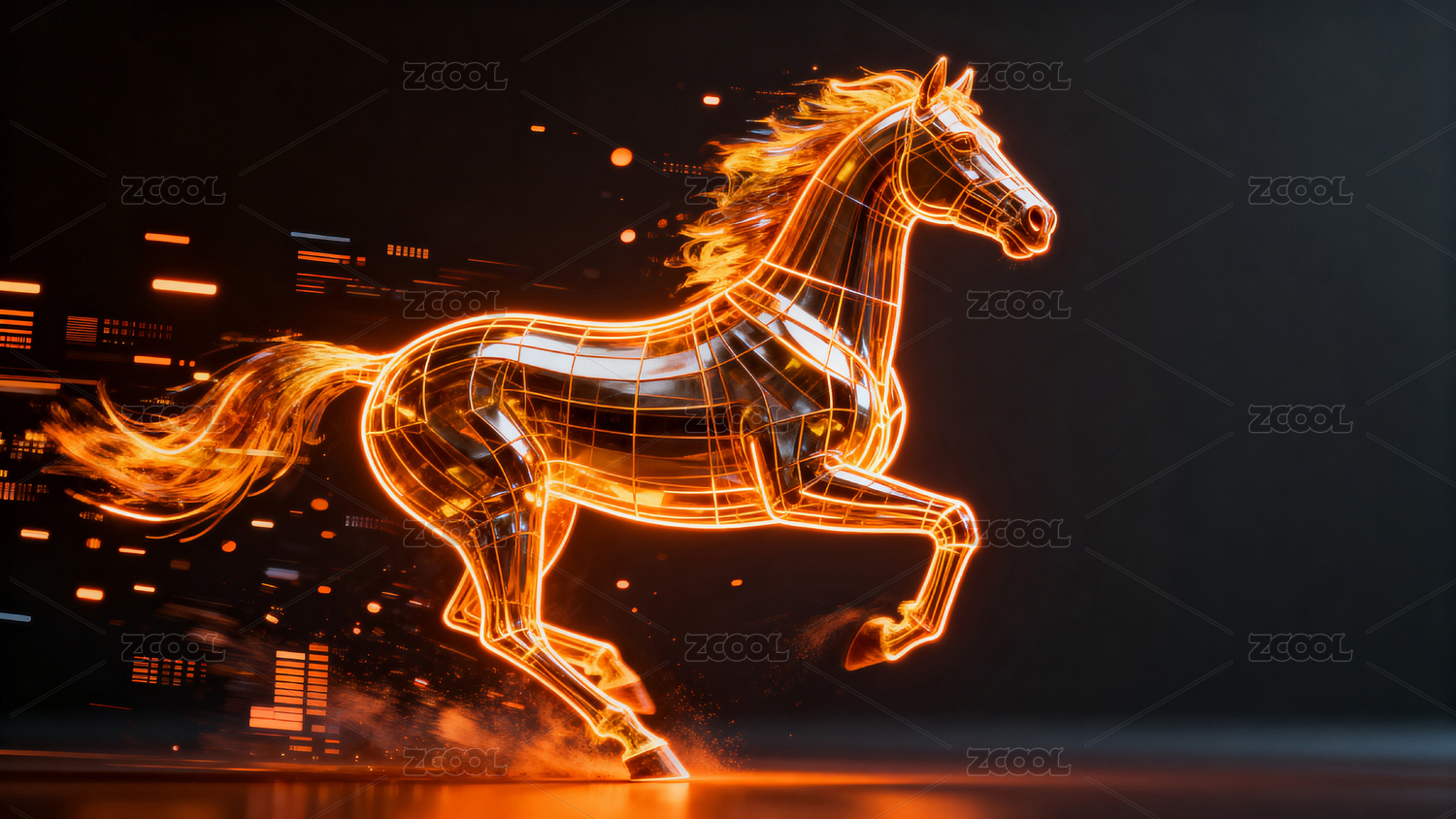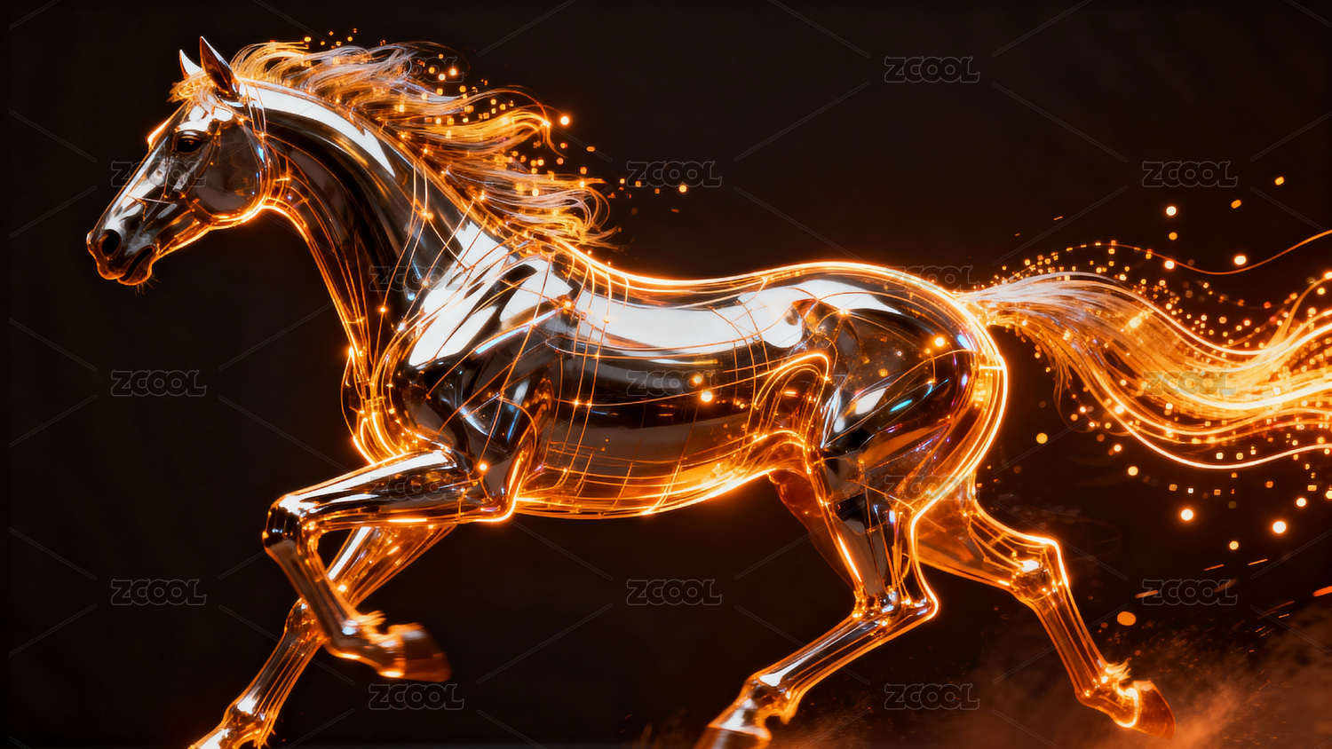 镭射,光束,橙色,马,骏马,奔腾,动物,马年,金色,投资
