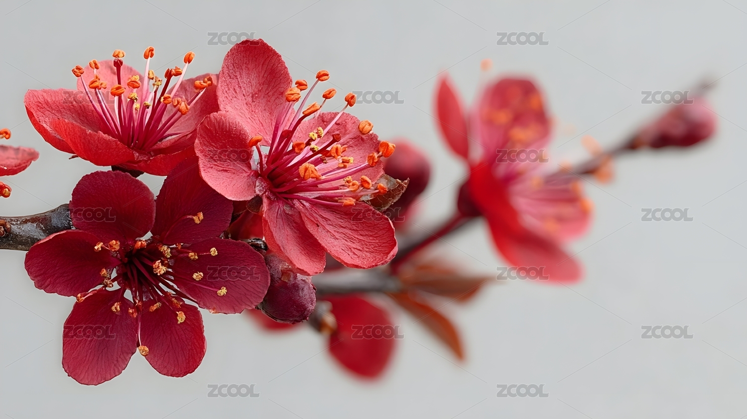 红色梅花枝条特写