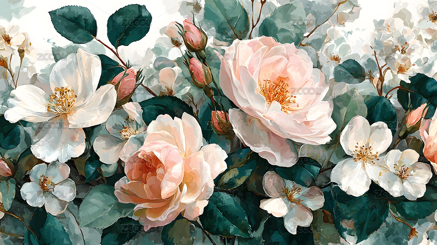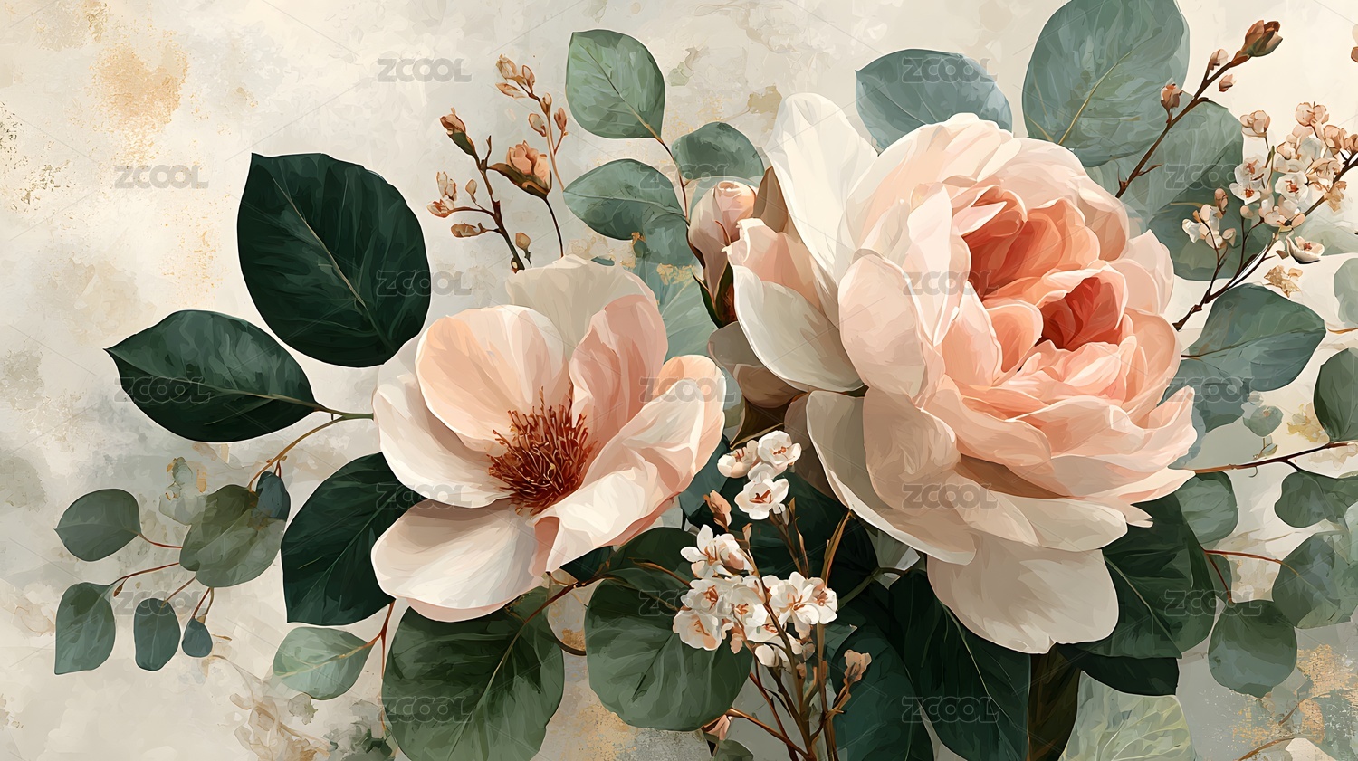 优雅花卉艺术插画