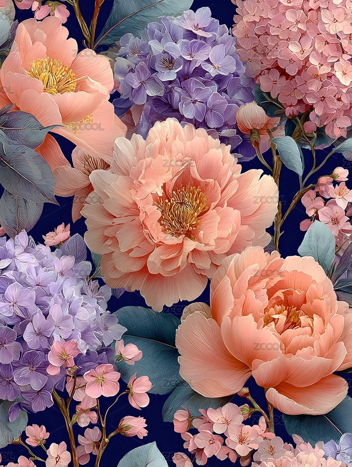 3D立体花卉印花背景