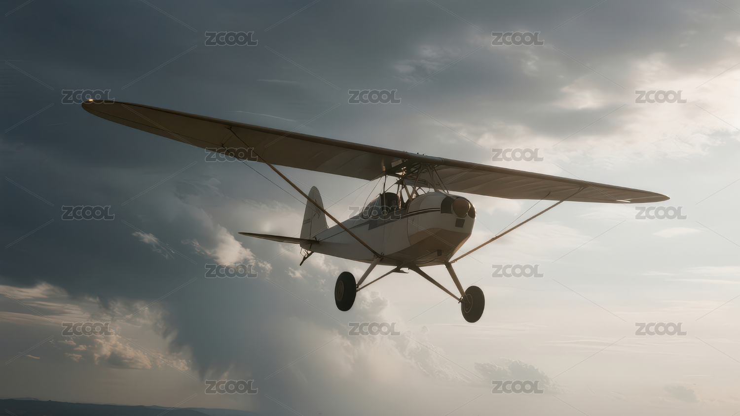 小型飞机在云层间飞行