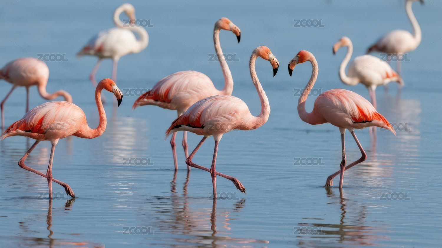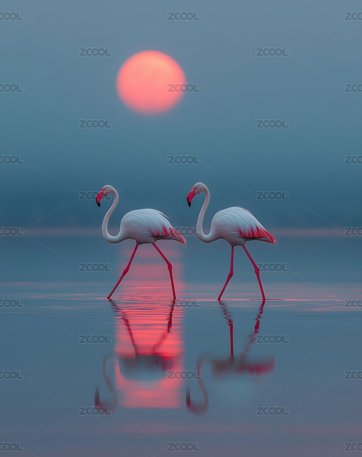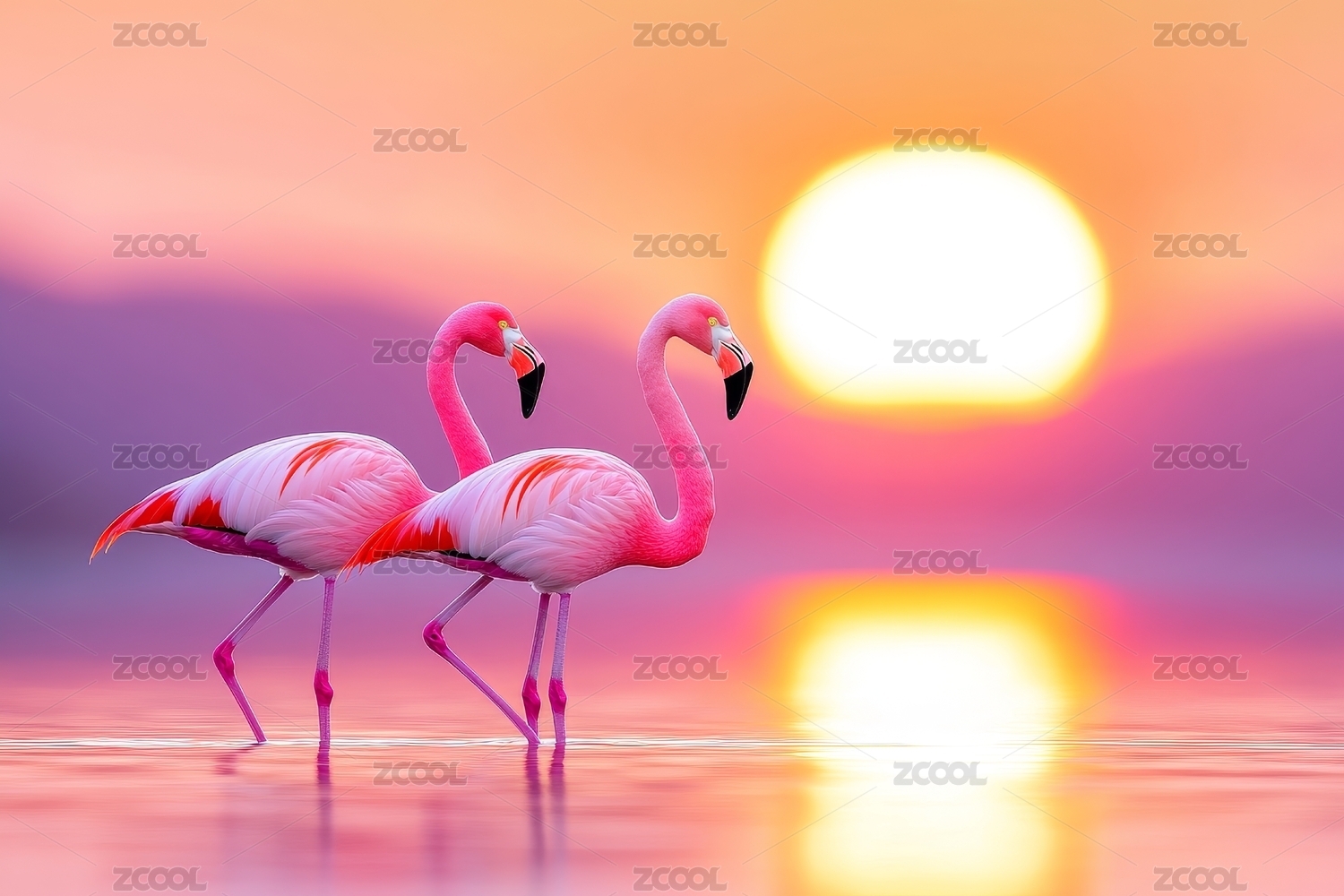 倒影,水面,环境,日落,火烈鸟,鸟类,野生动物,生态,美丽,黄昏