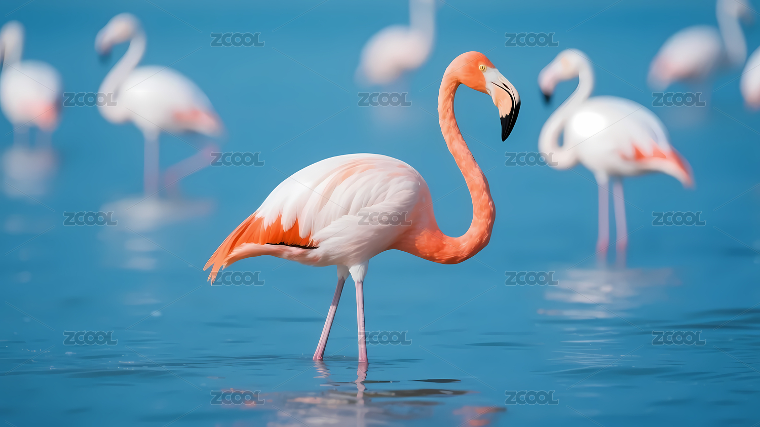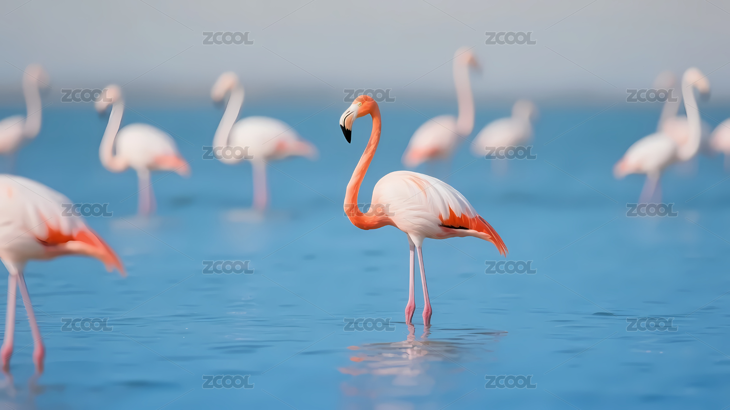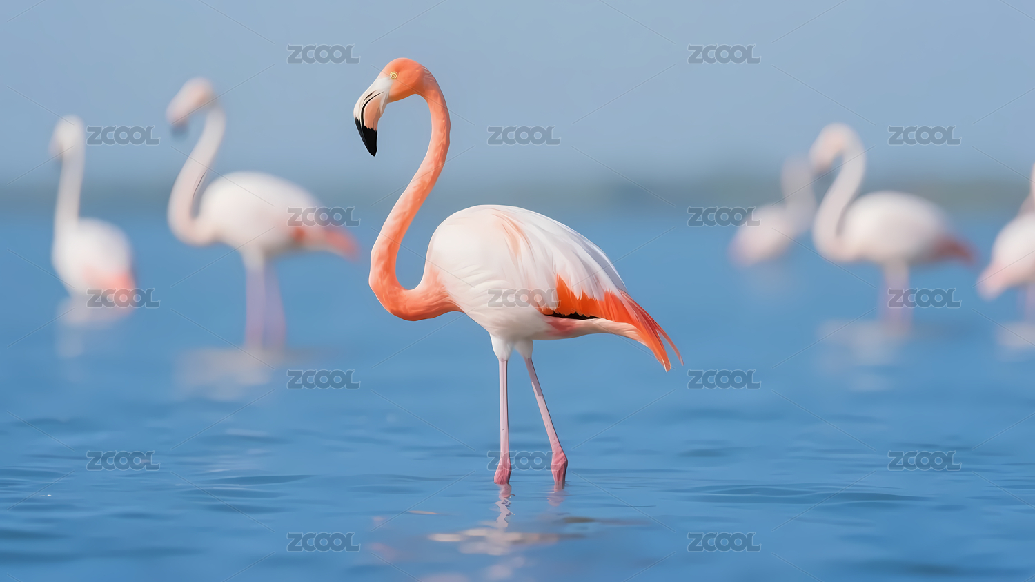 倒影,水面,环境,日落,火烈鸟,鸟类,野生动物,生态,美丽,黄昏