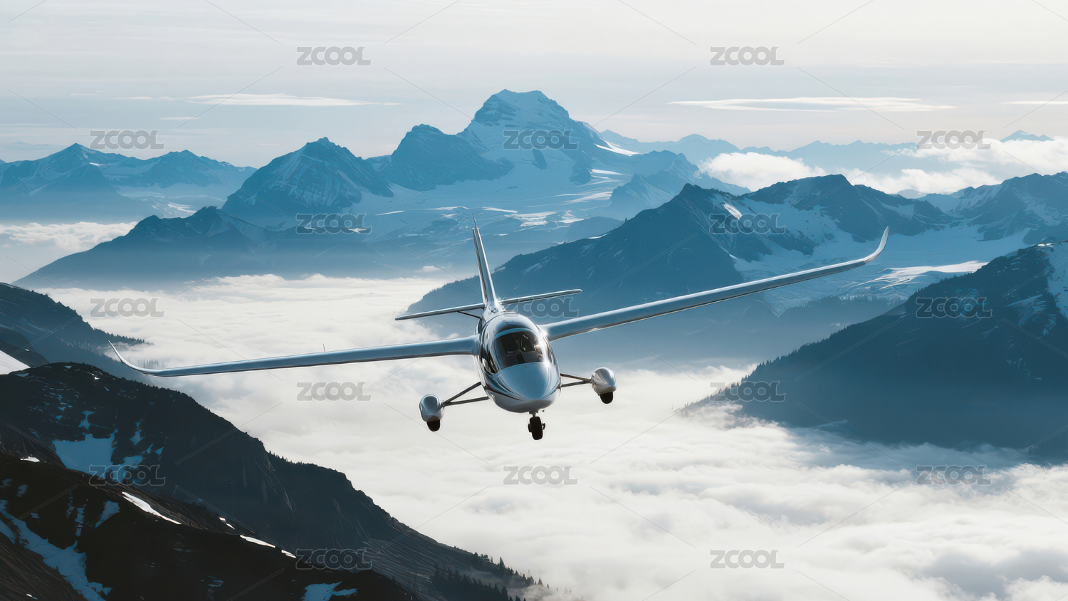 小型飞机飞越雪山云海
