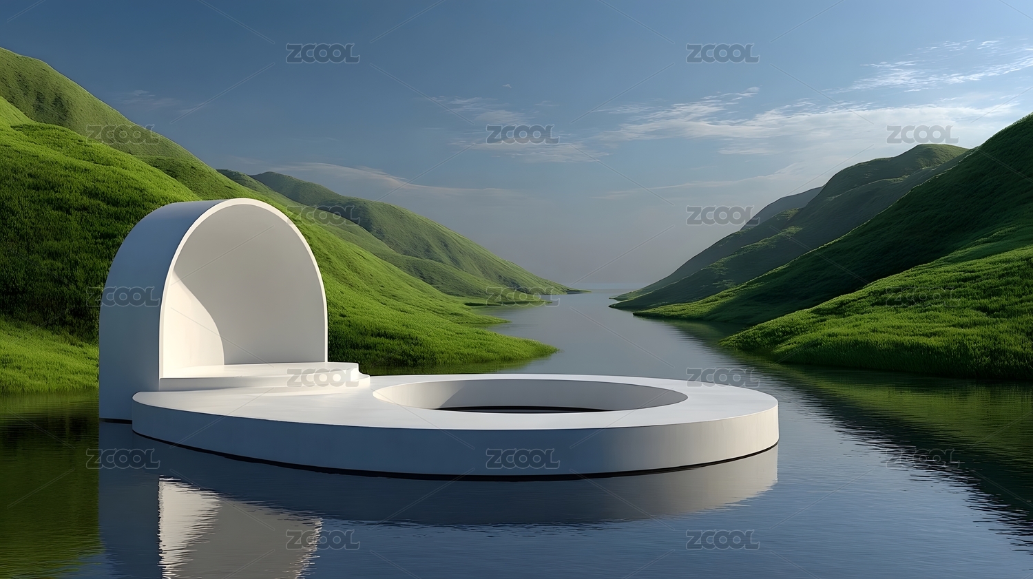 绿色山丘与白色平台