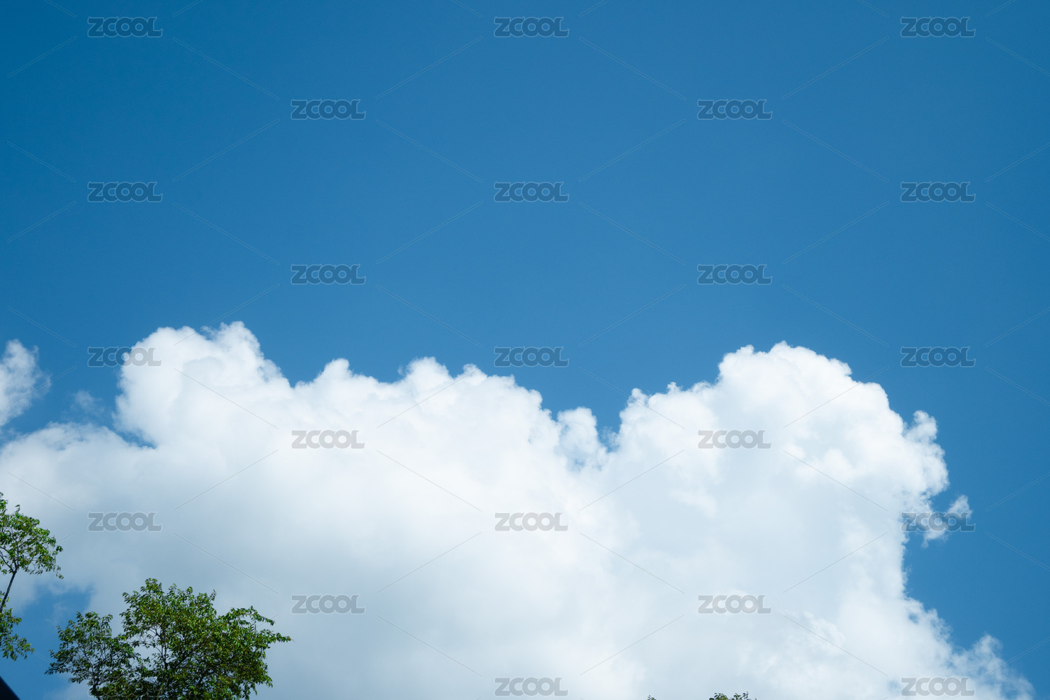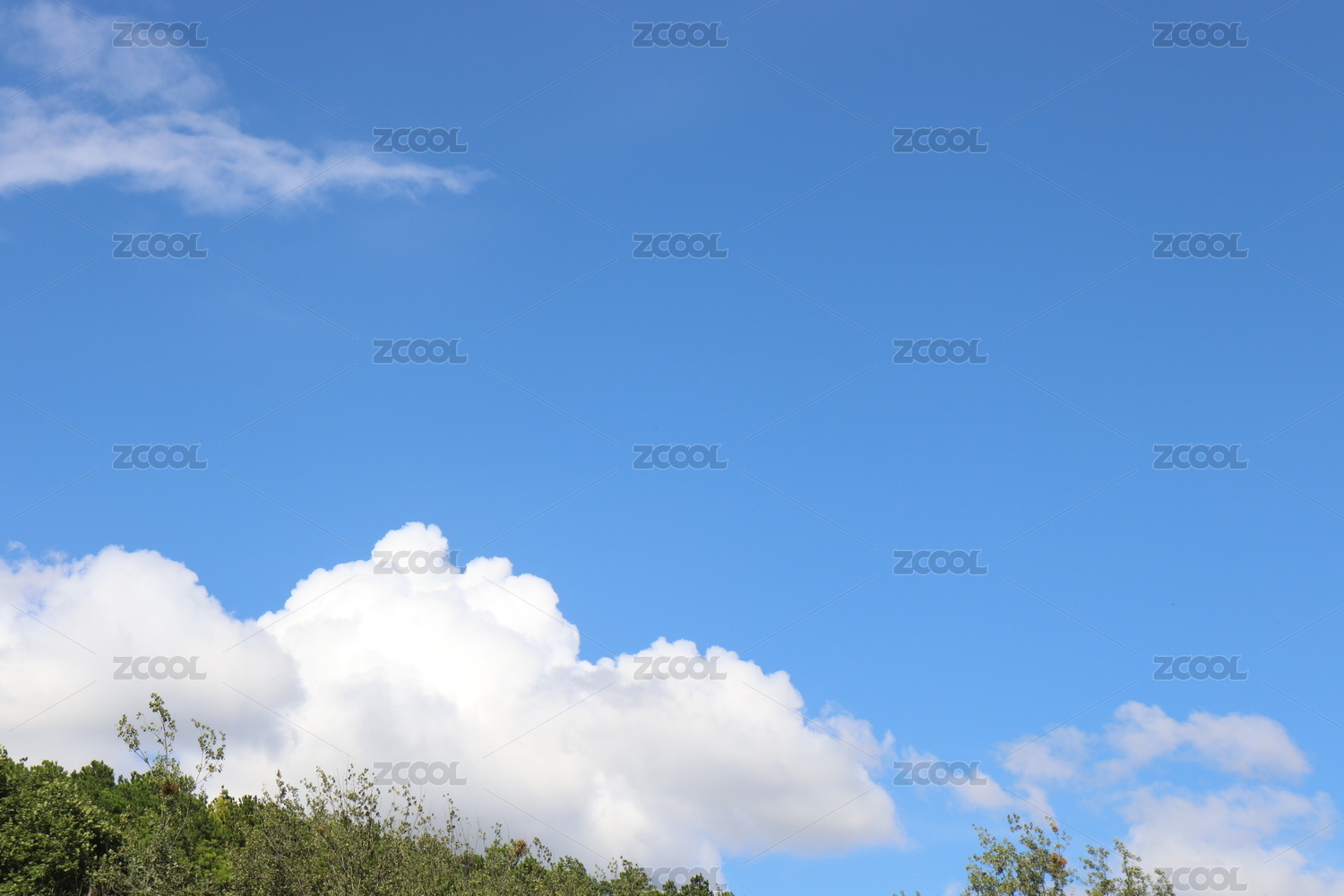 蓝天绿树白云背景