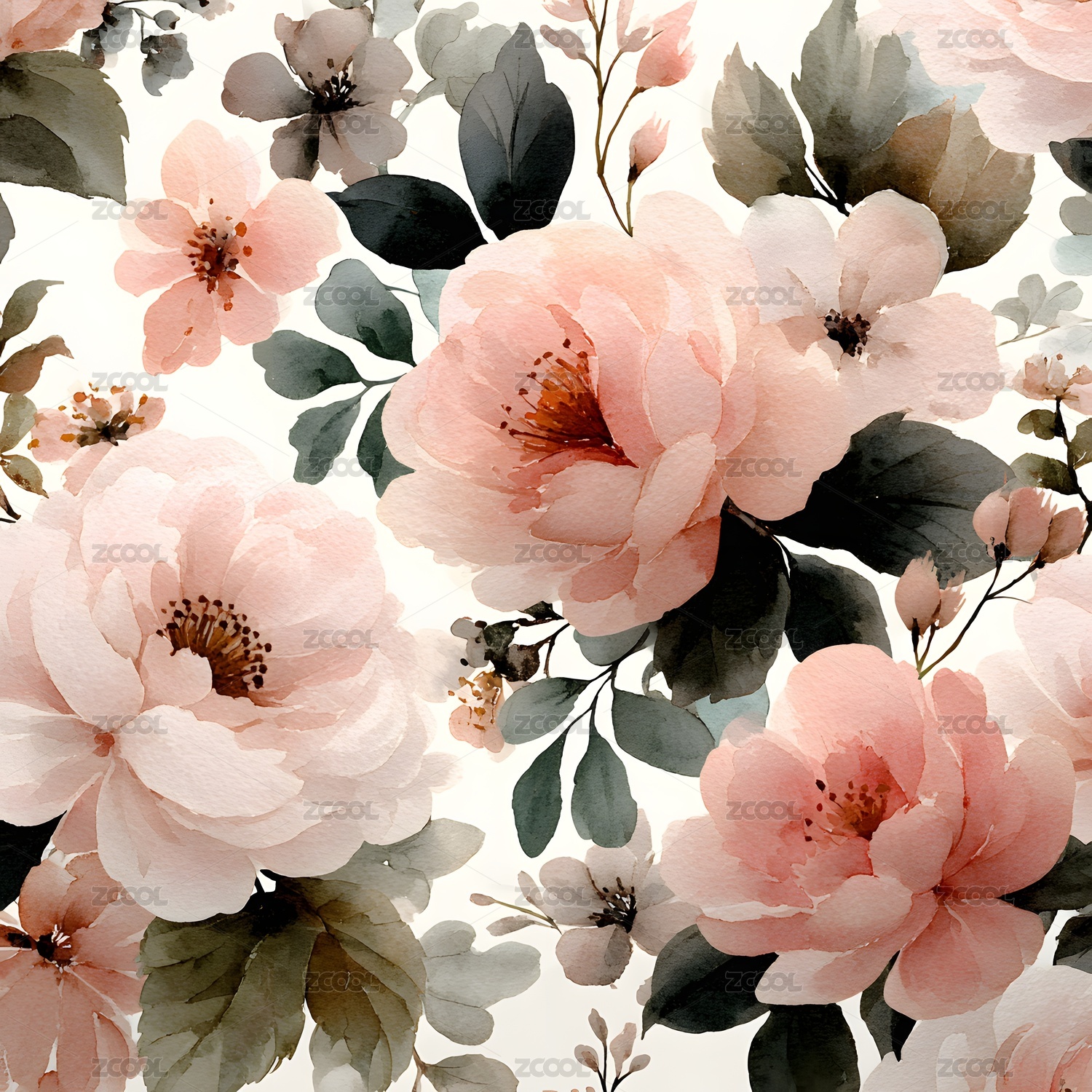 花朵,花瓣,花蕊,植物,花卉,叶子,枝条,绘画,水彩,盛开