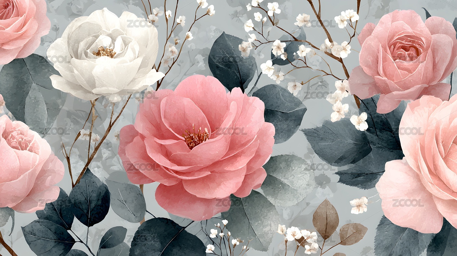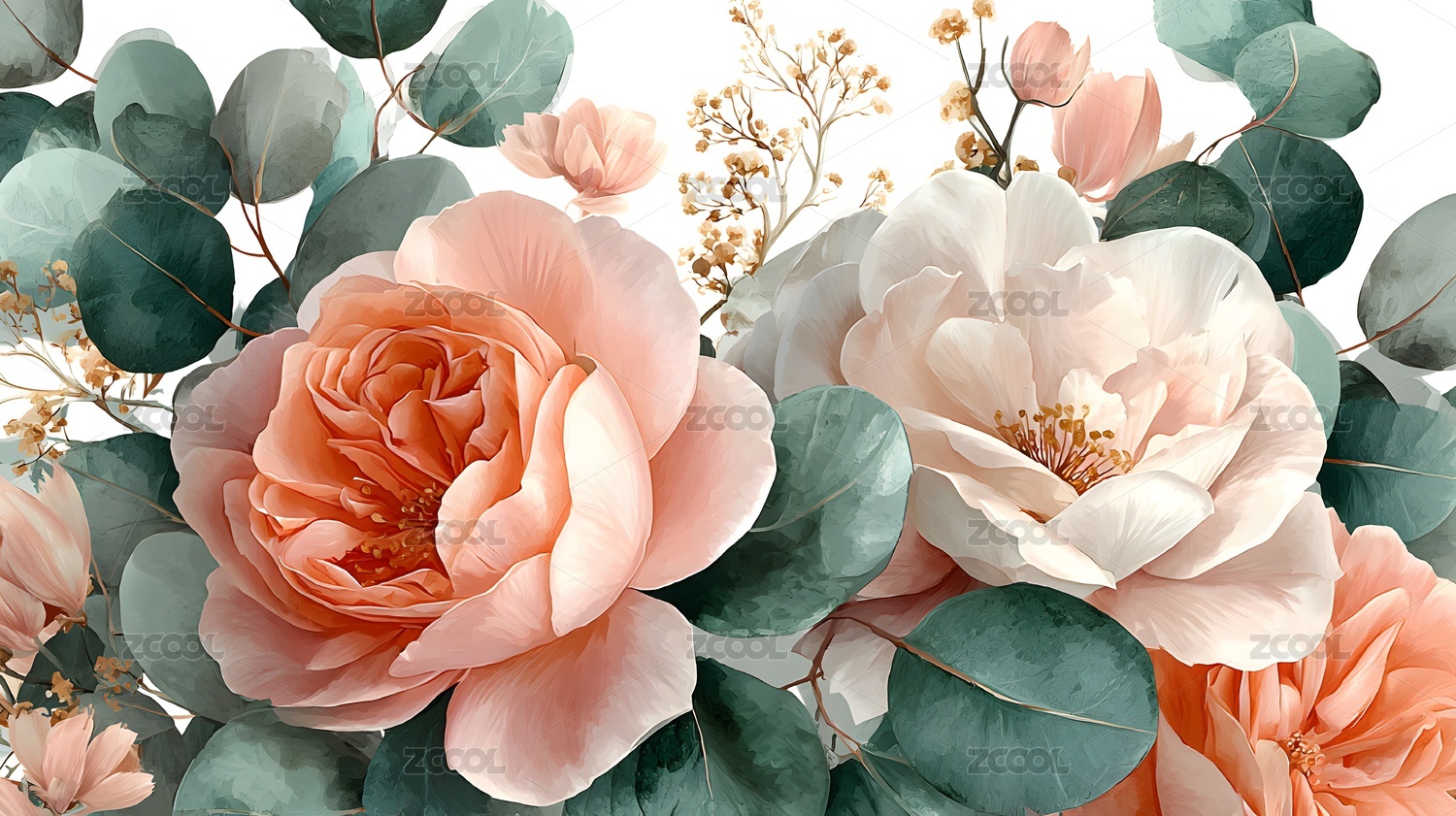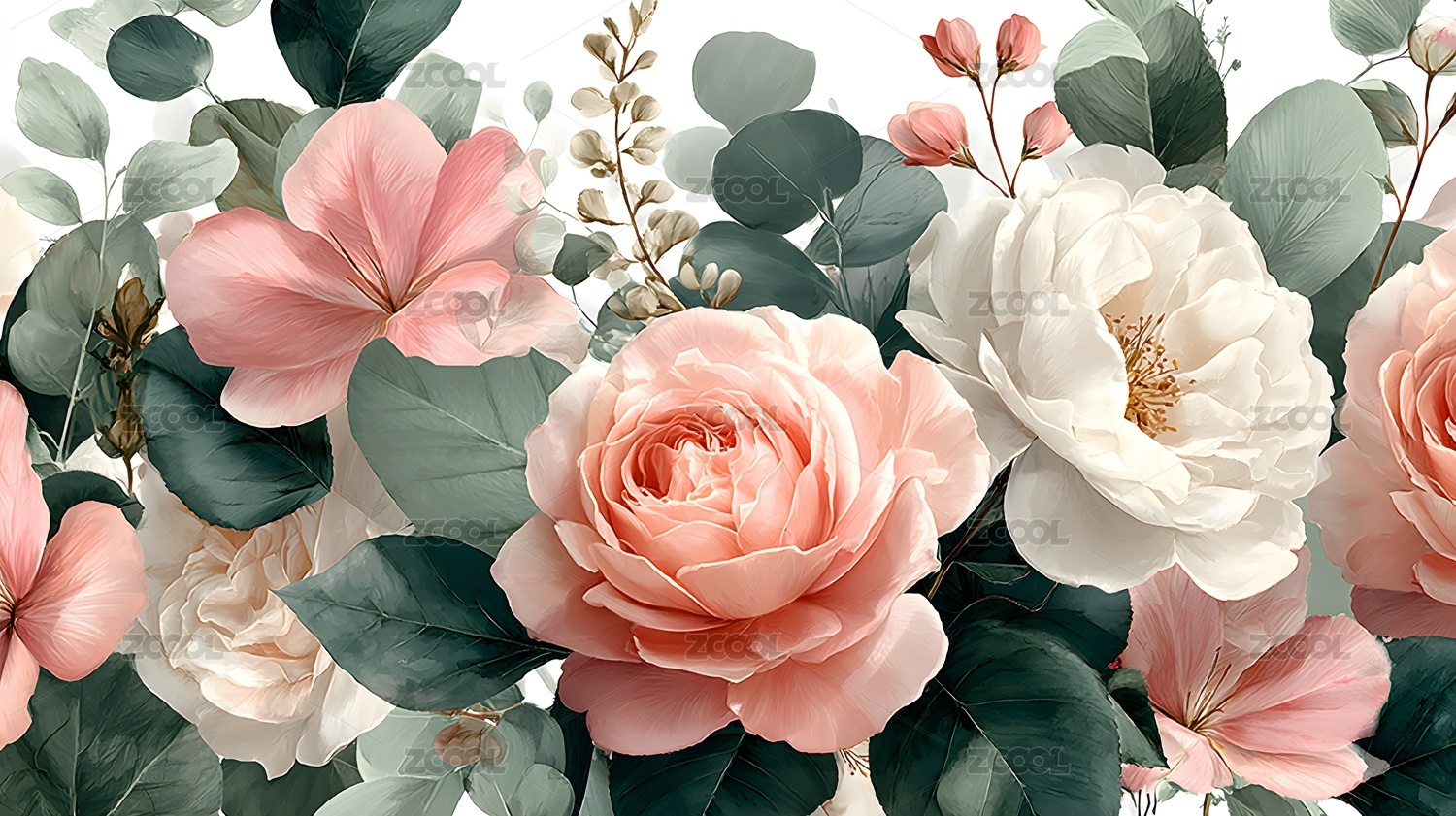 优雅花卉艺术插画