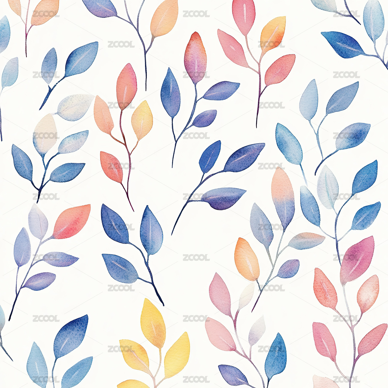 植物,叶子,枝条,背景,橙色,水彩,设计,装饰,艺术,粉色