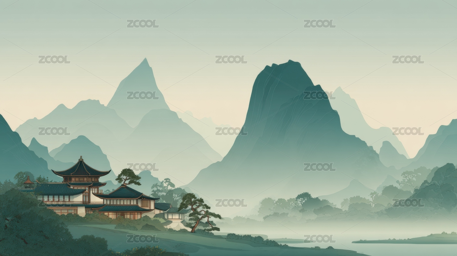 艺术,山峰,远山,近景,自然,风景,宁静,水墨,朦胧,山水