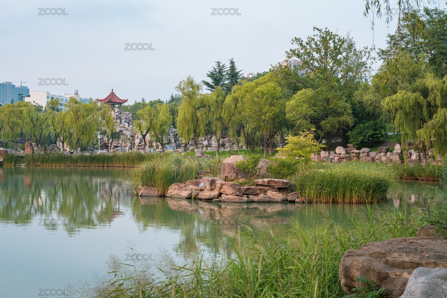傍晚的市民公园湖畔景色