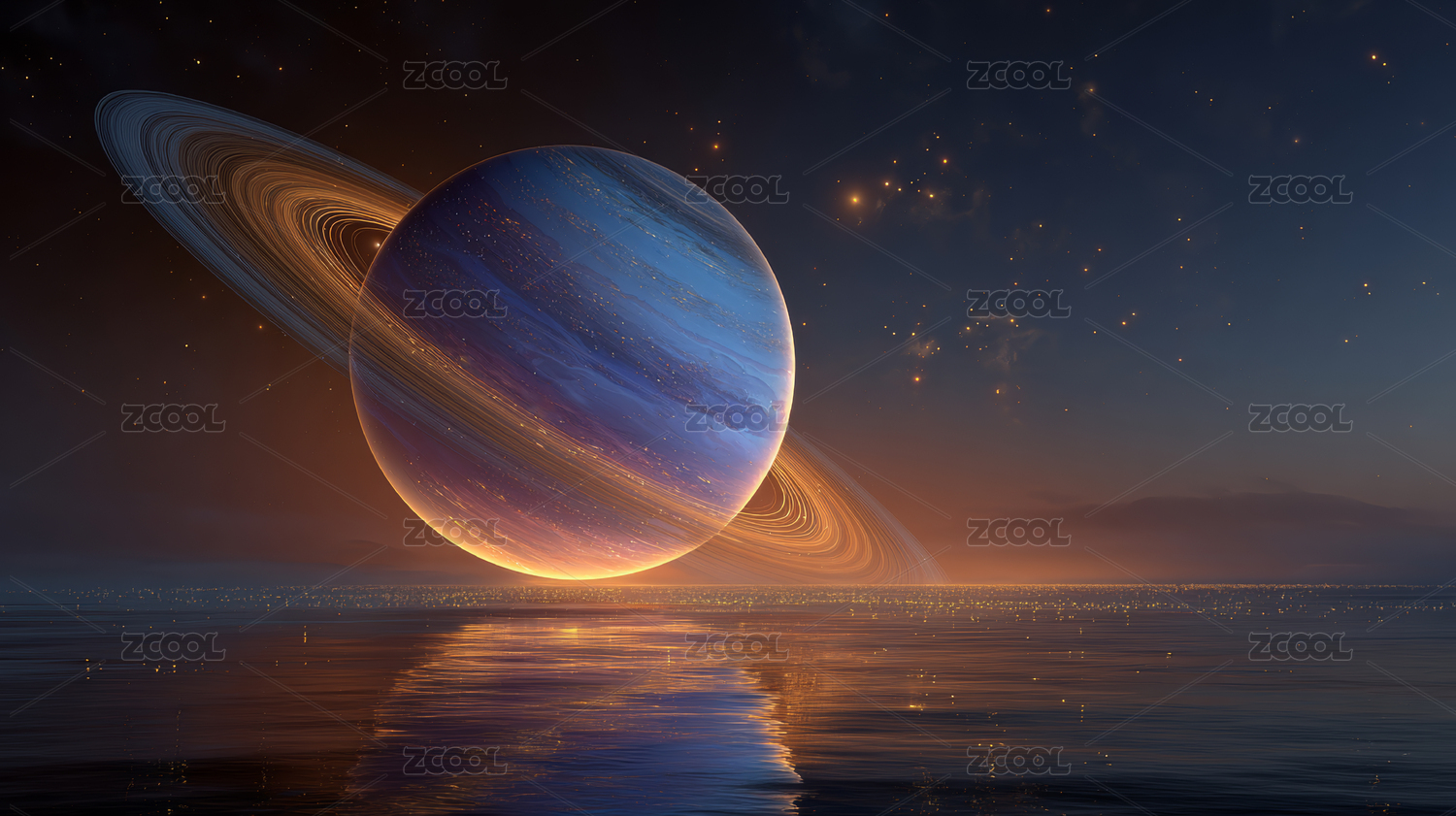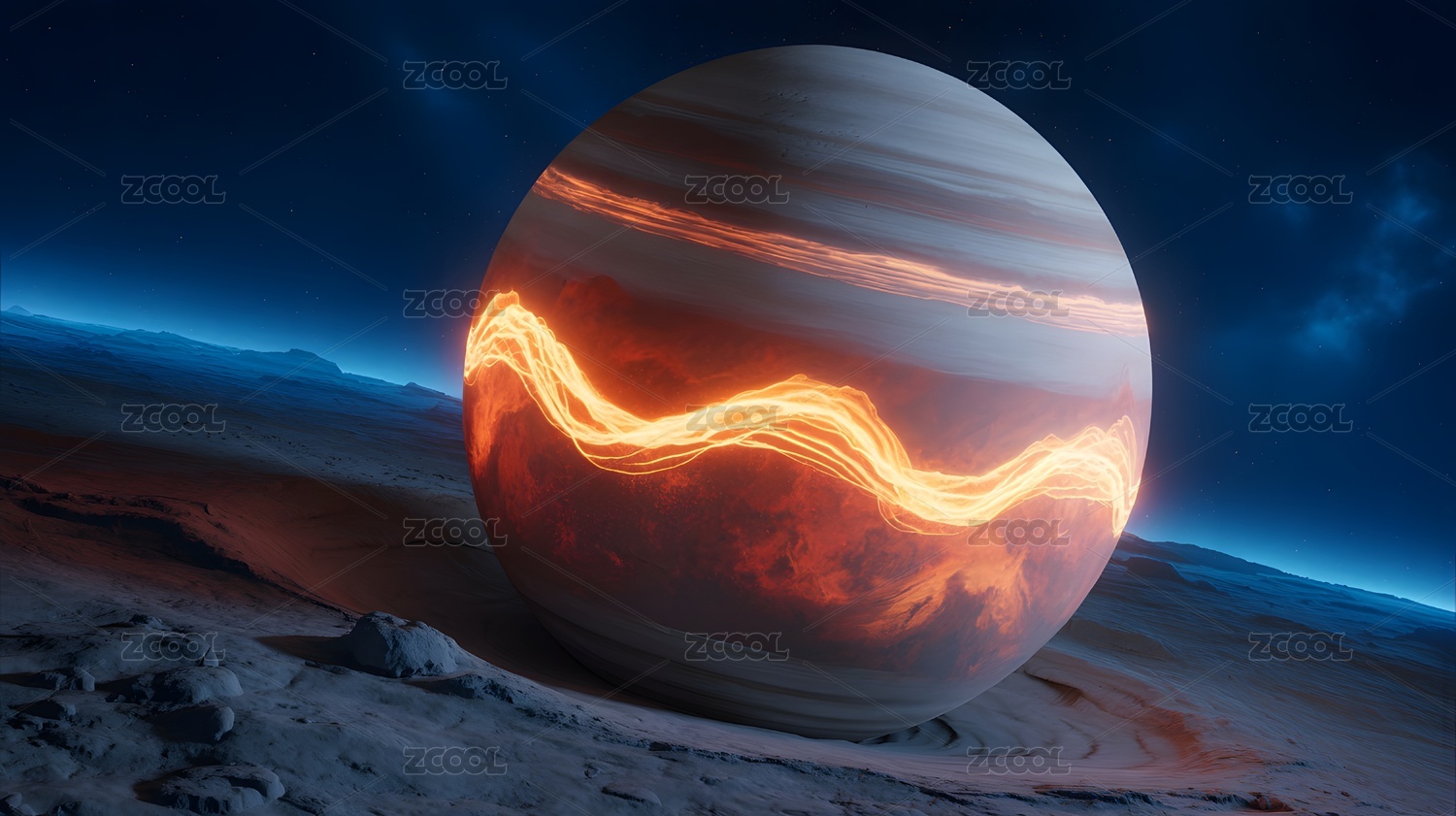 色彩斑斓的行星悬浮于宁静沙漠之上