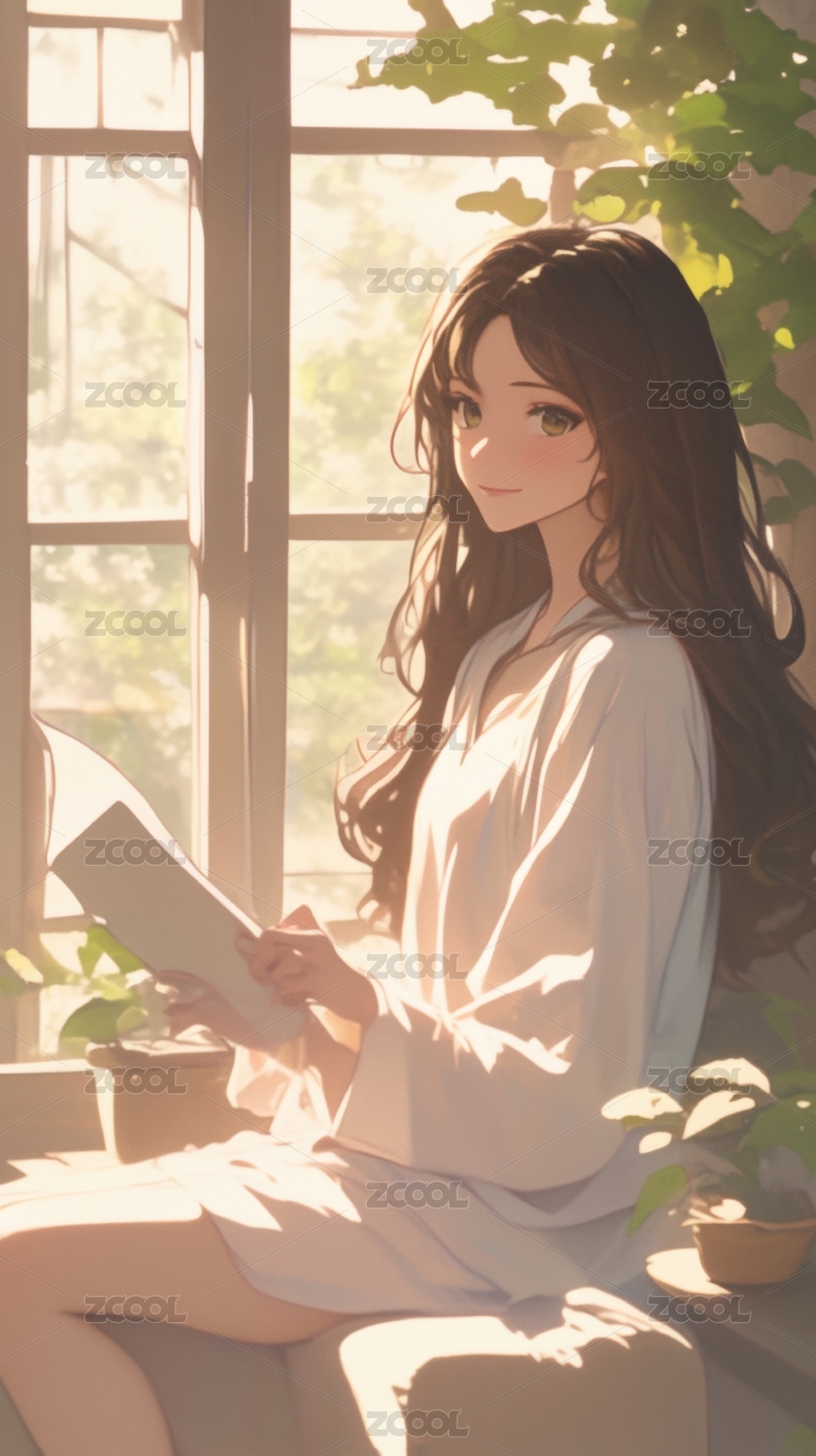 长发,环境,卡通,插画,动漫,漫画,人,室内,白色,温馨