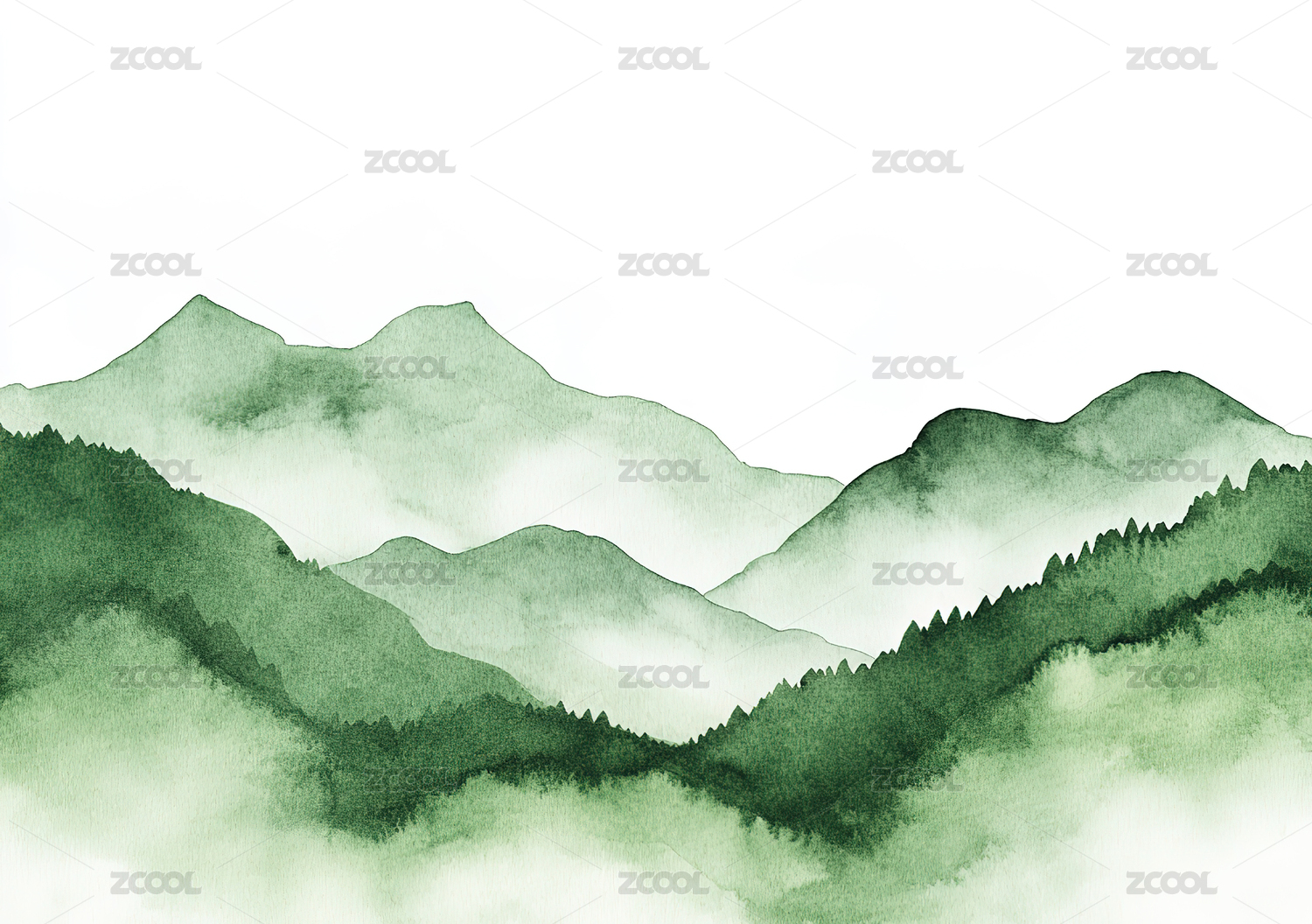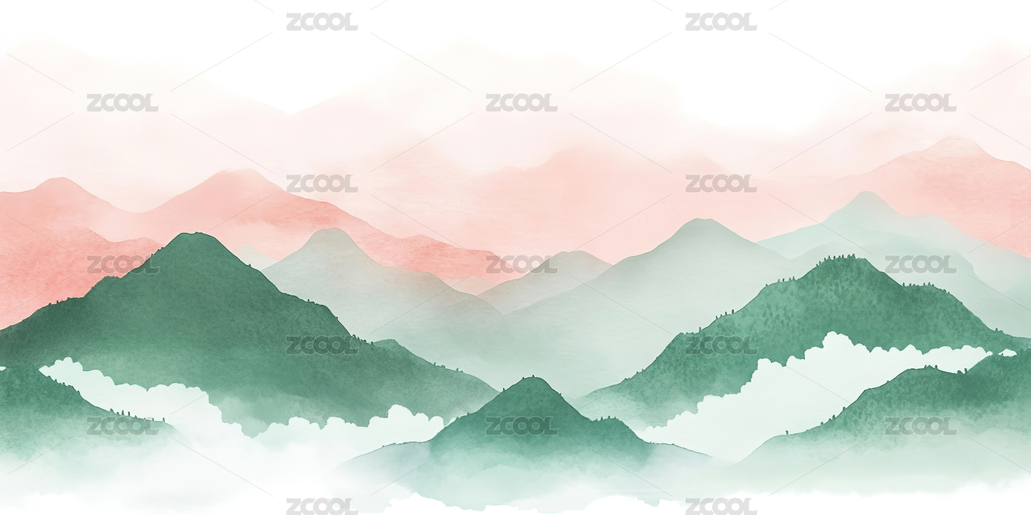 山峦,云雾,蓝天,插画,矢量,背景,自然,风景,清新,淡雅