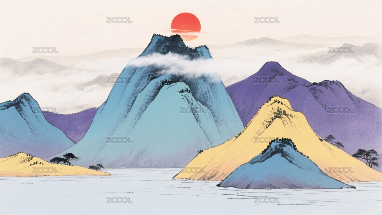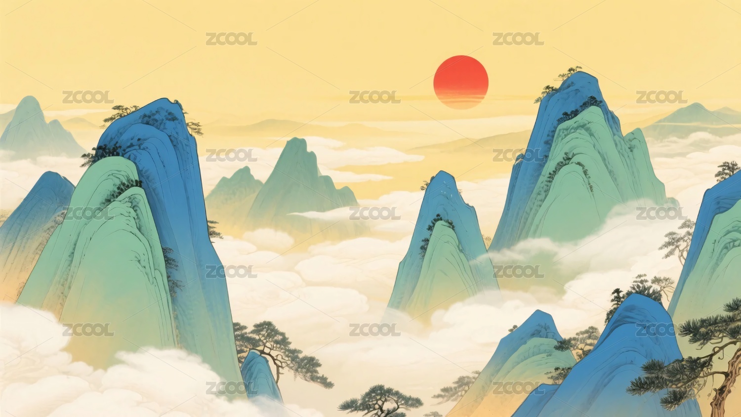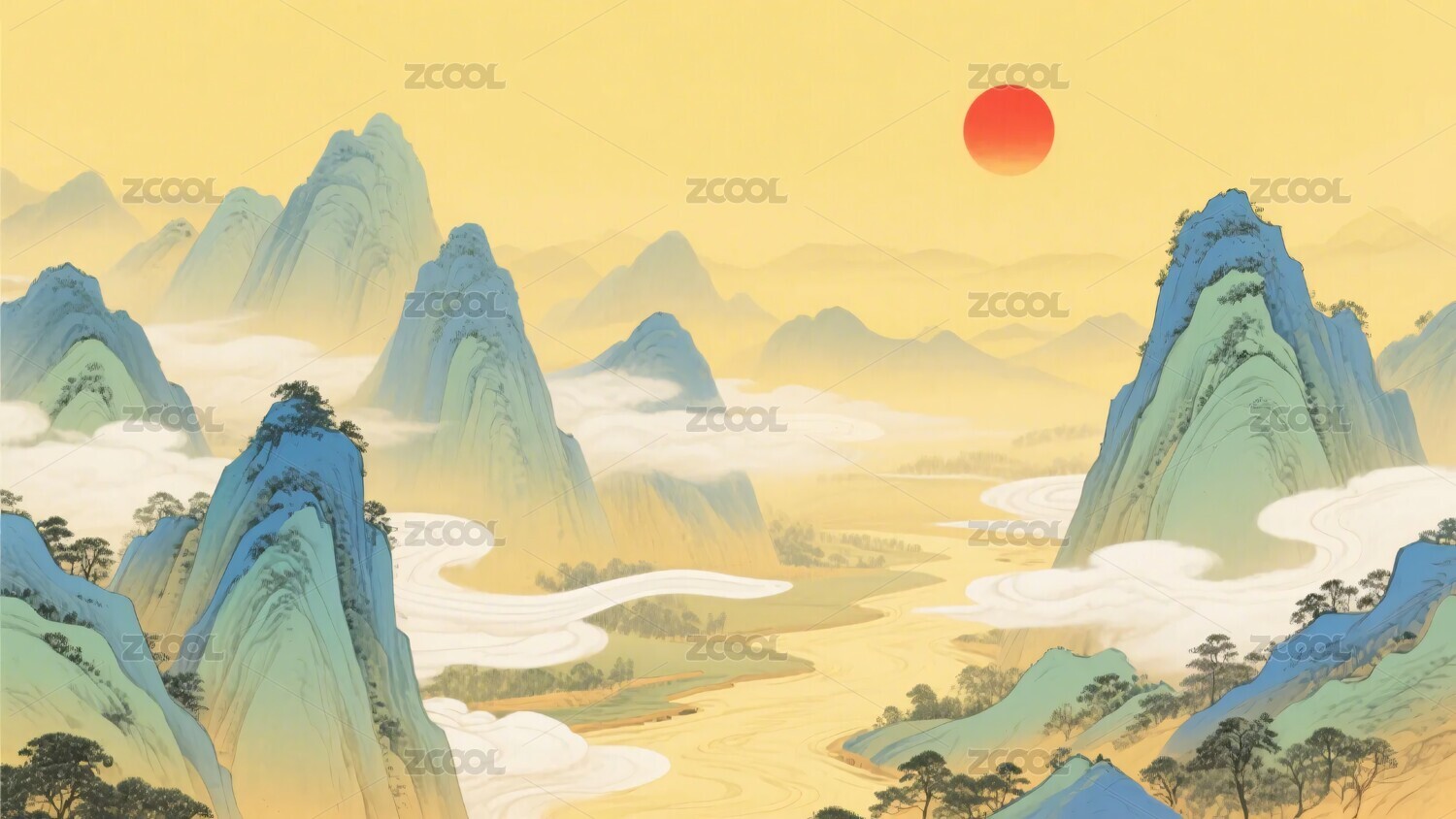 中式山水日出图景