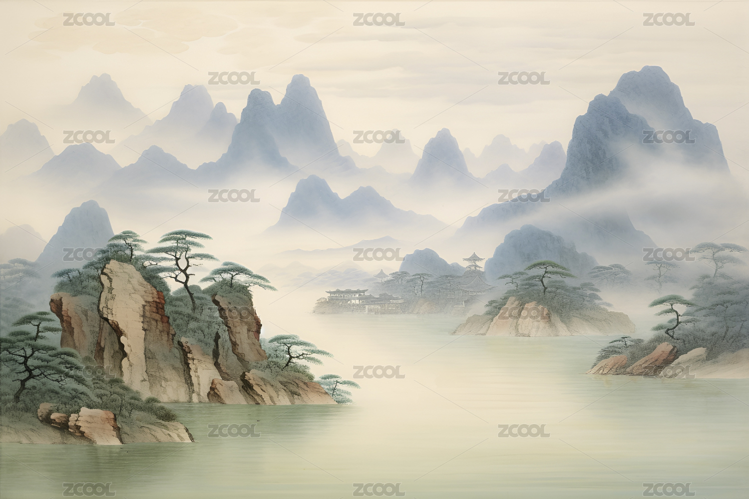 中式山水意境插画