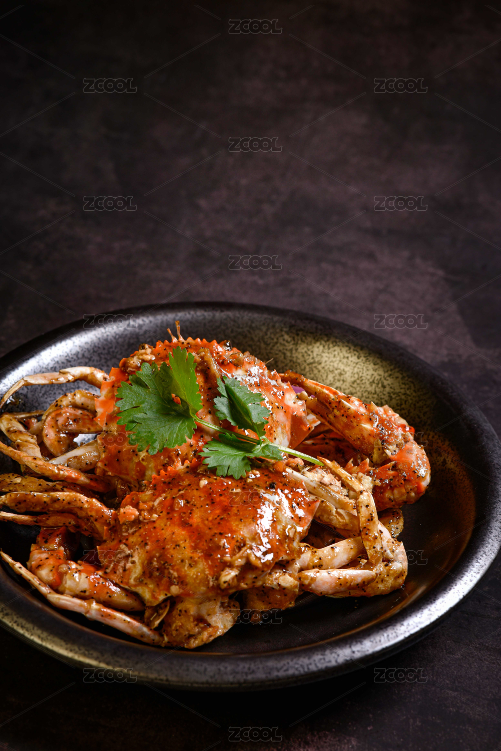 黑背景清蒸青蟹红鲟螃蟹海鲜海产