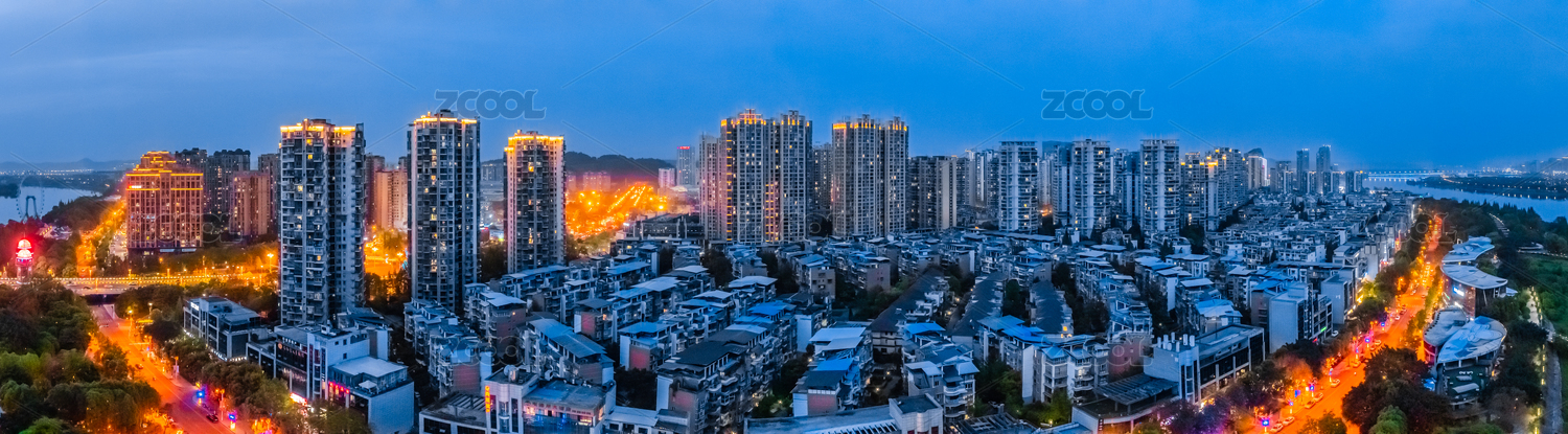 中国四川省夜幕遂宁市城区高楼大厦建筑