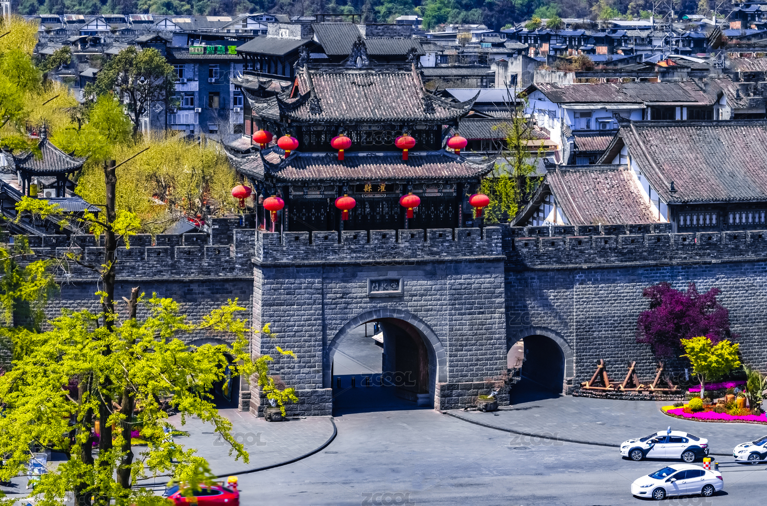 中国,四川省,都江堰市,岷江,高楼大厦,古城,古城门,宣化门,古城墙,建筑物
