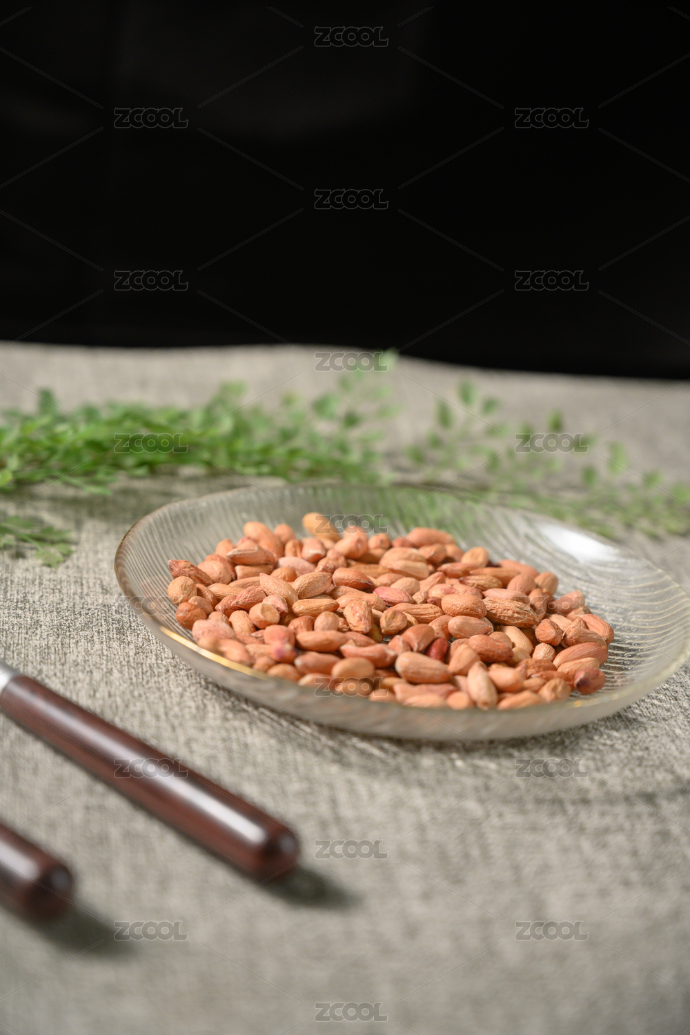 桌面上的盘子里的美味可口的皱皮花生