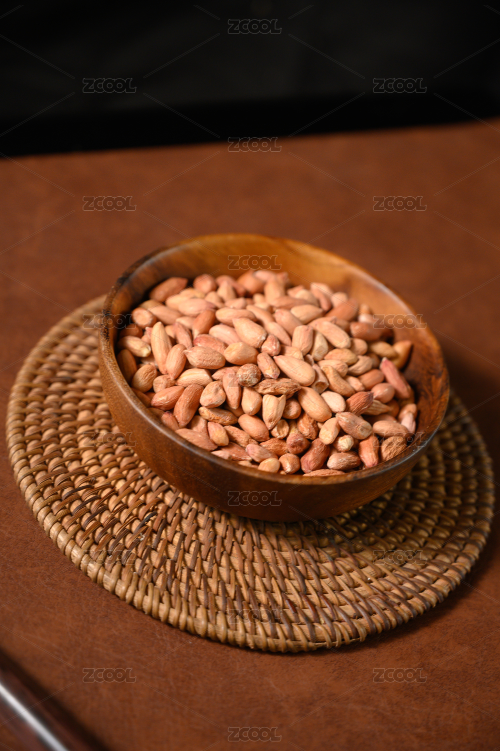 桌面上的盘子里的美味可口的皱皮花生