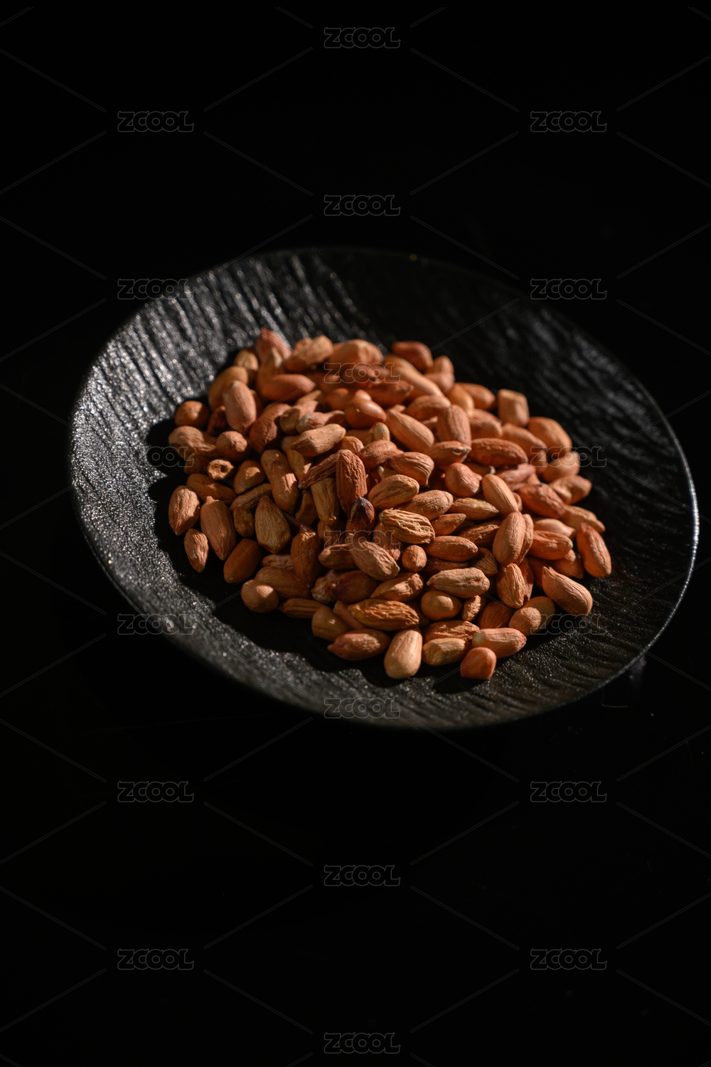 桌面上的盘子里的美味可口的皱皮花生