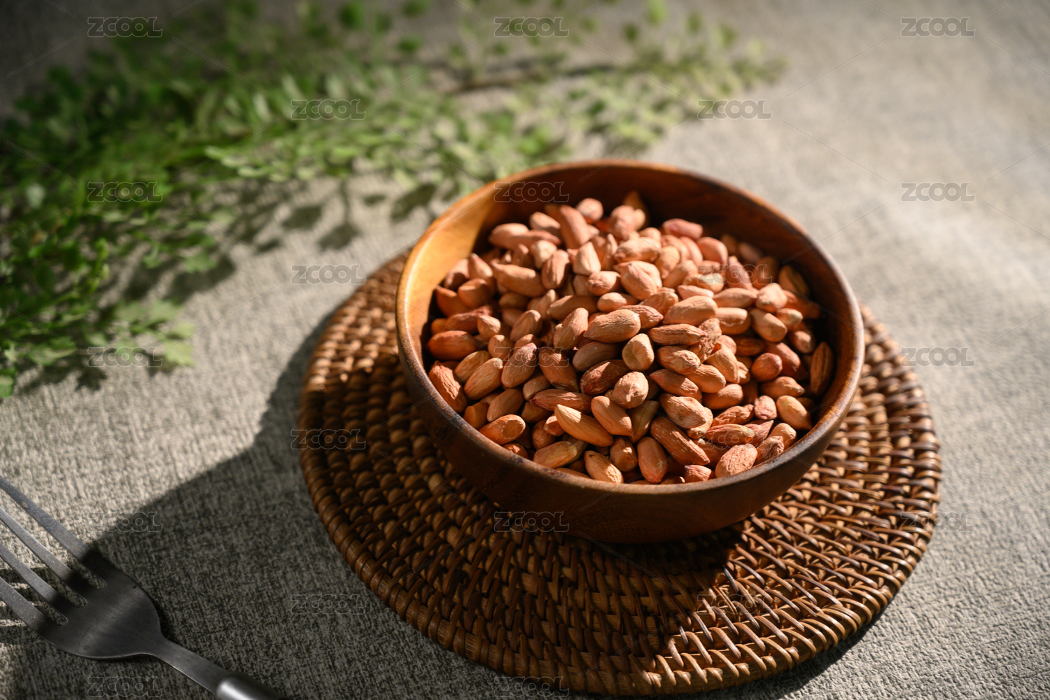 桌面上的盘子里的美味可口的皱皮花生