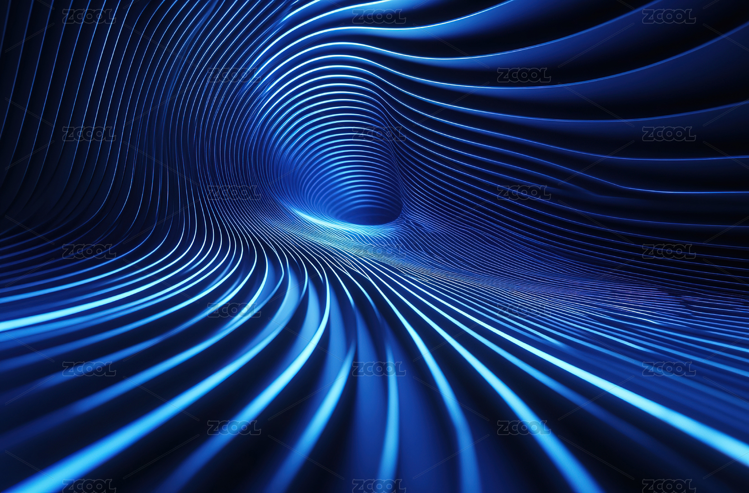 蓝色光轨隧道抽象艺术