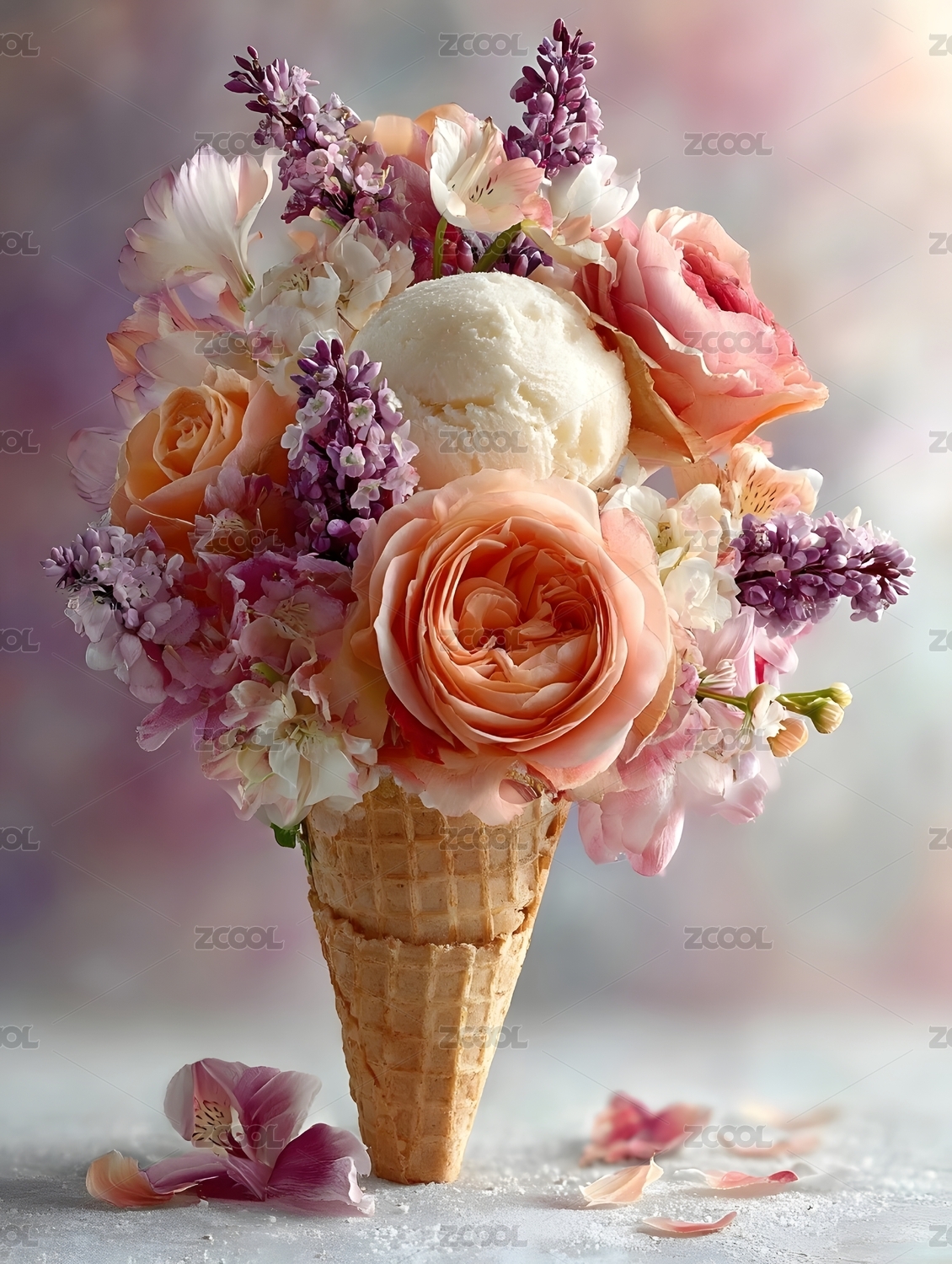 花朵,背景,花束,花,冰淇淋,冰激凌,甜筒,紫色花,康乃馨,雏菊