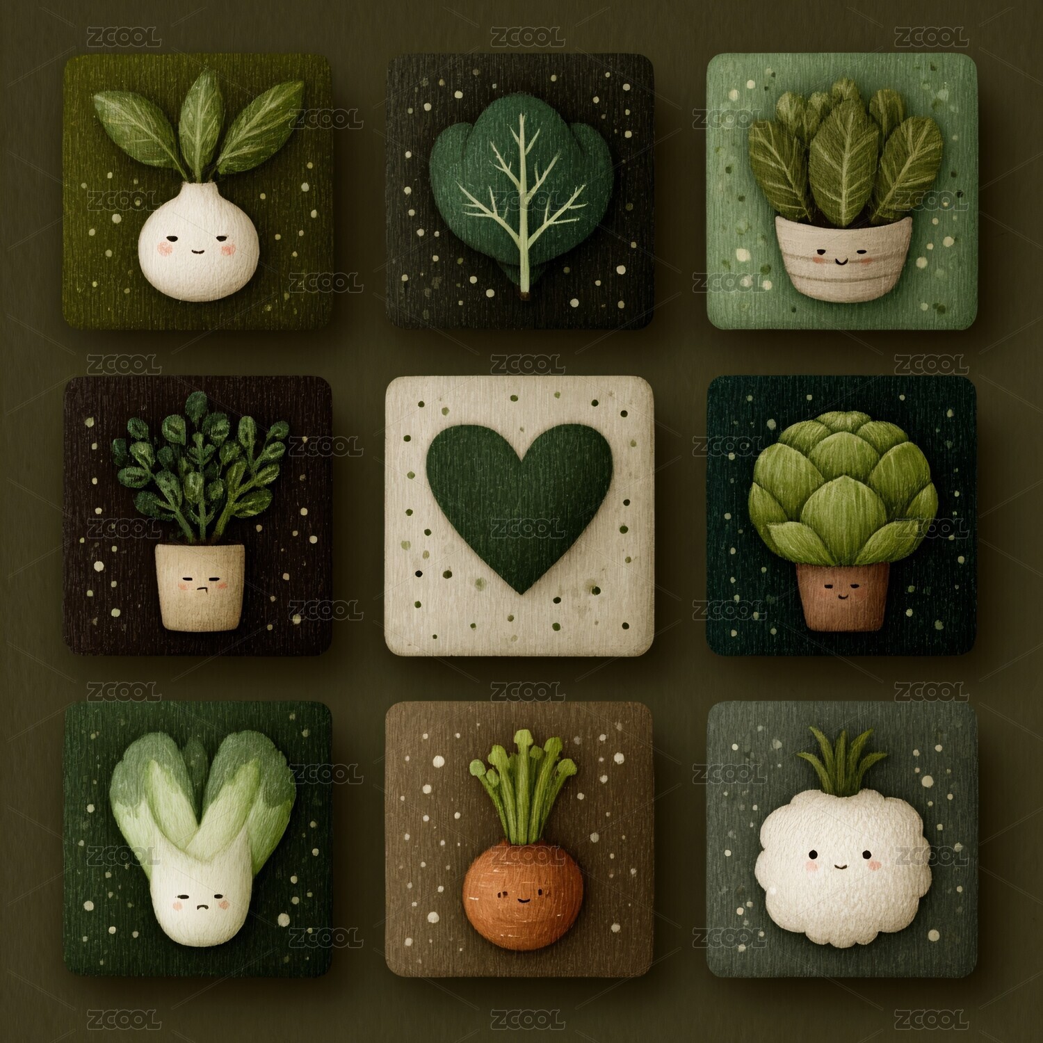 可爱插画风蔬菜与装饰摆件