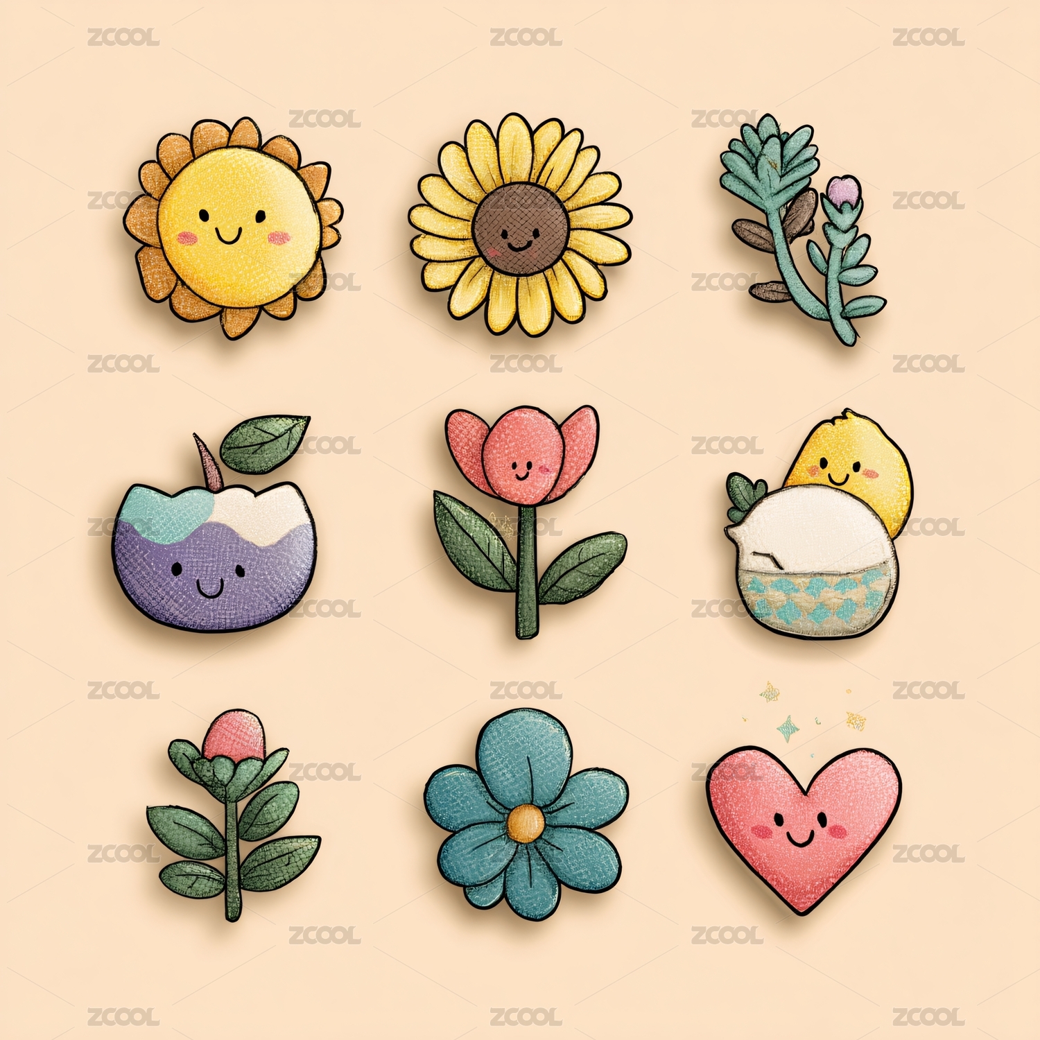 可爱插画风植物图案集合