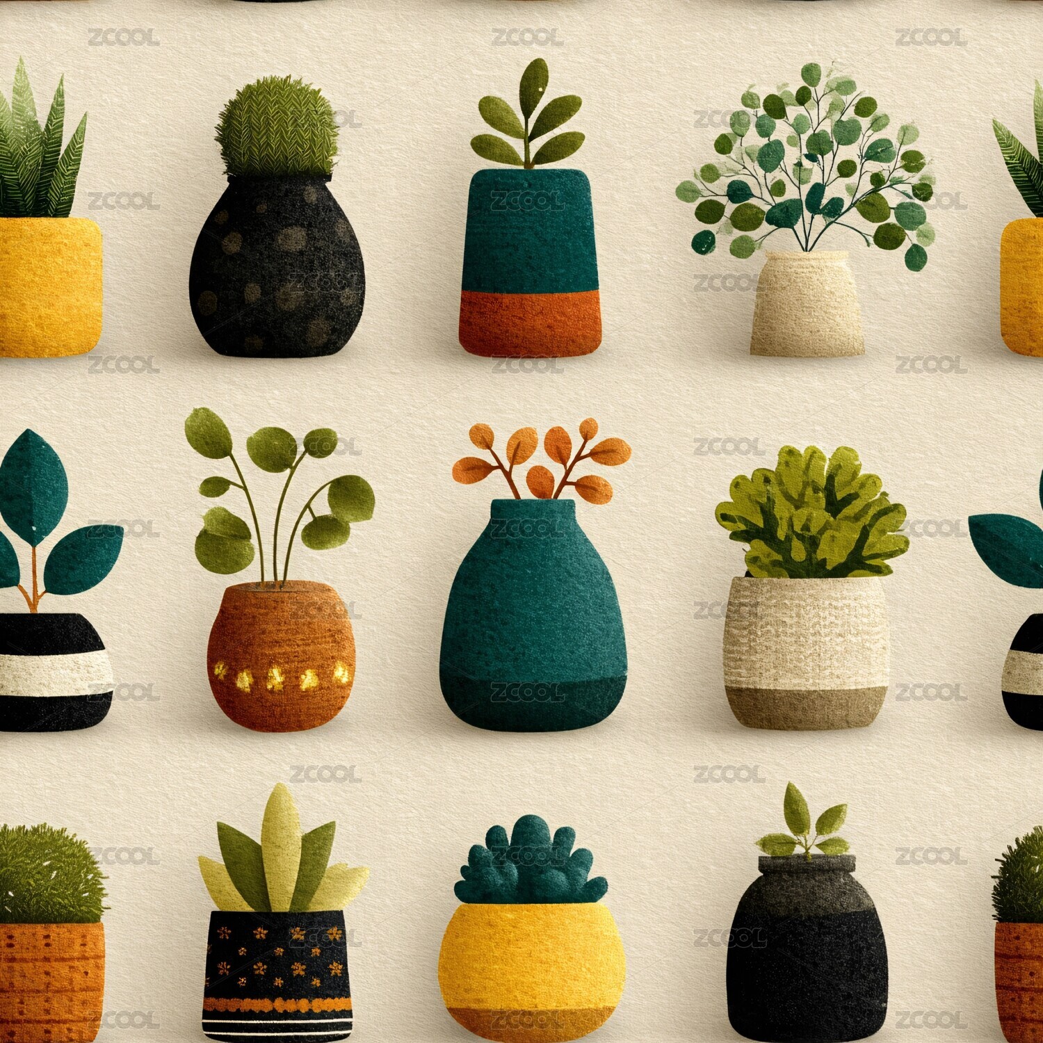 多样盆栽插画图案