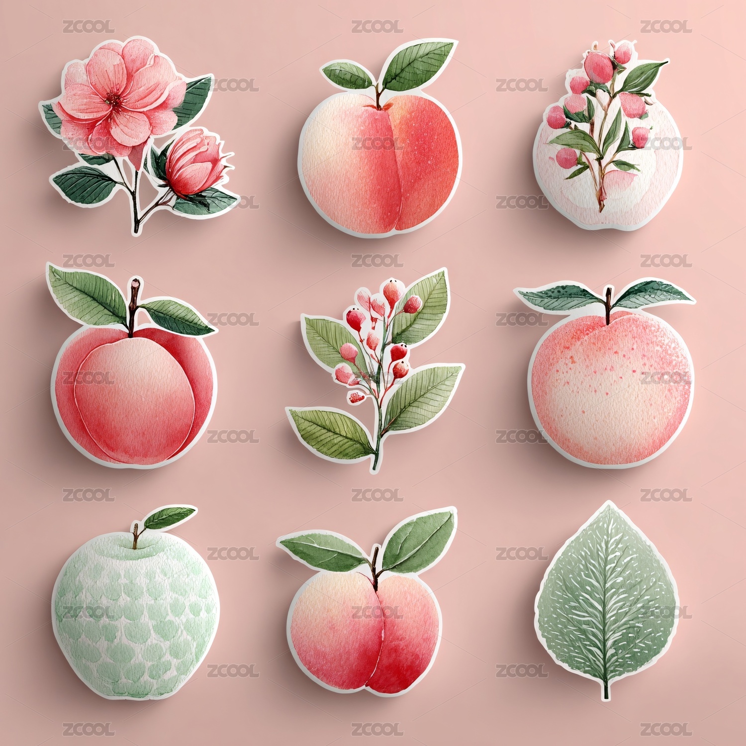 水彩风水果花卉贴纸图案