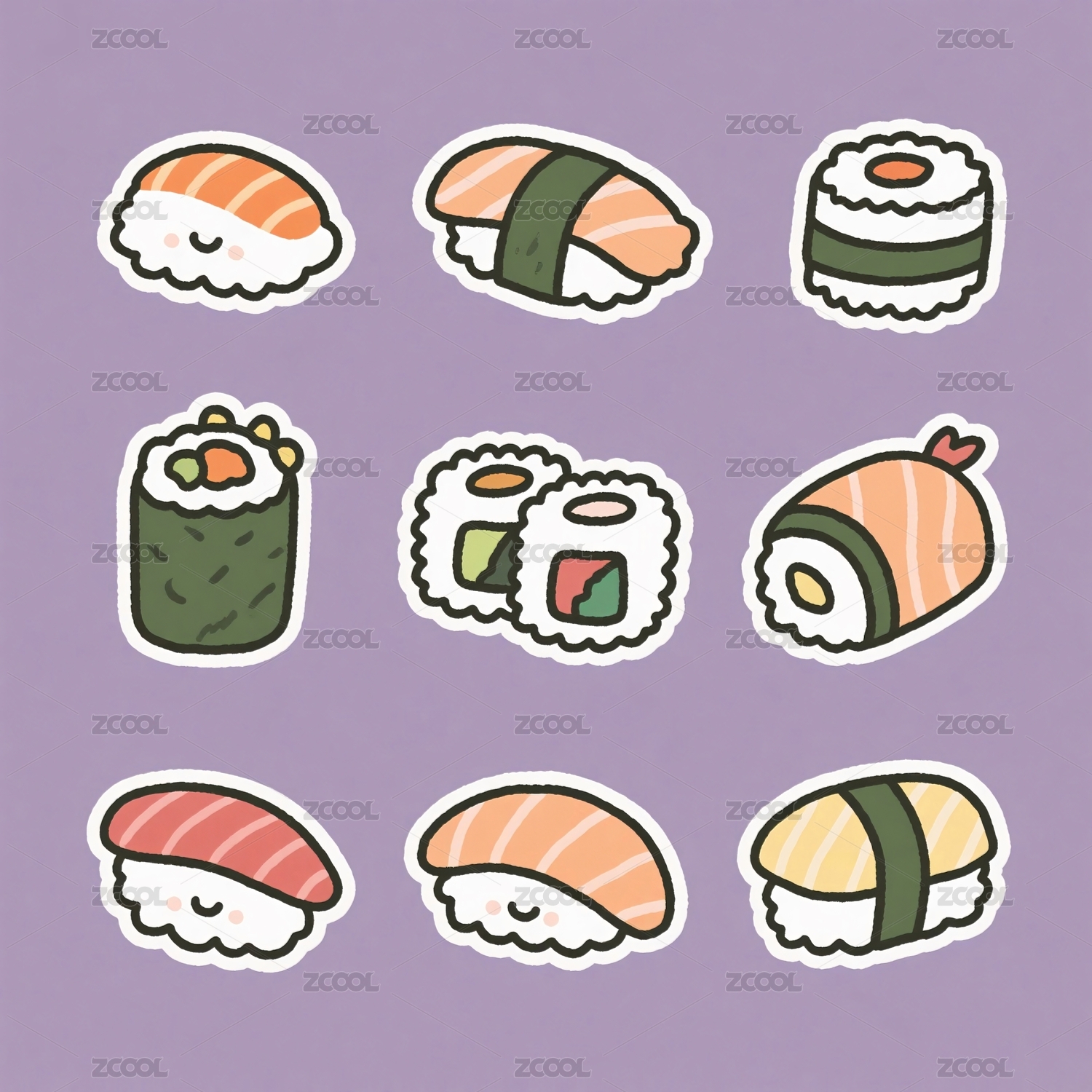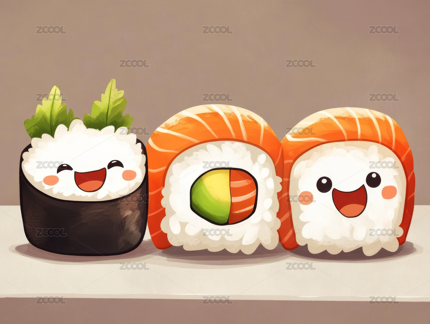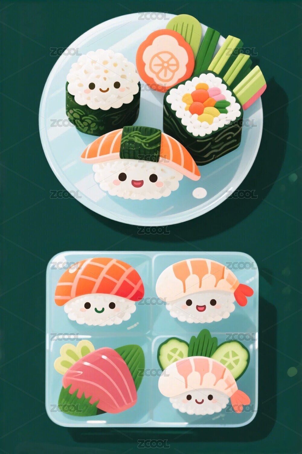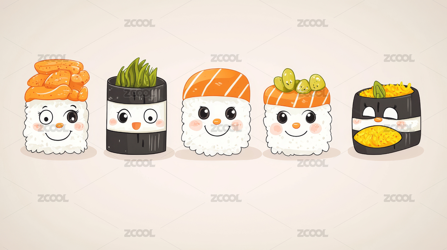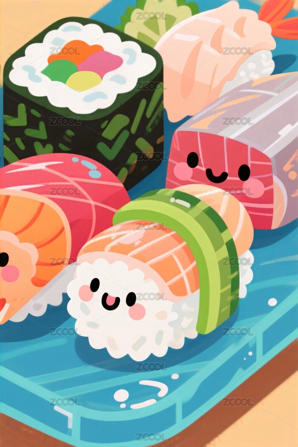 寿司,卡通,插画,可爱,食物,表情,图案,美食,装饰,设计