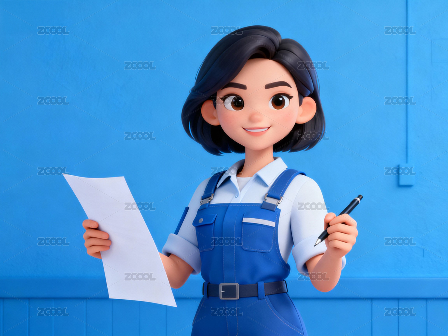 卡通人物手持文件微笑比OK